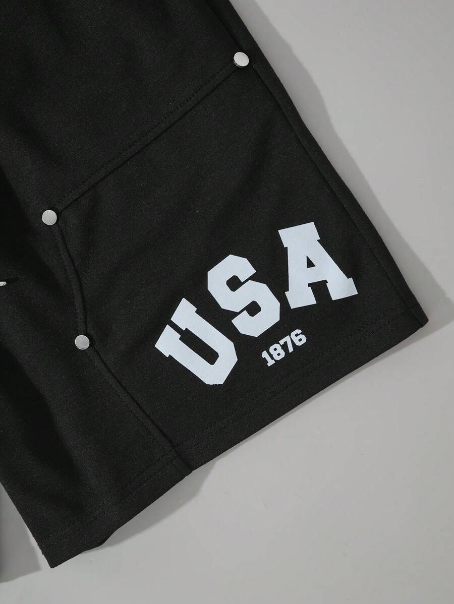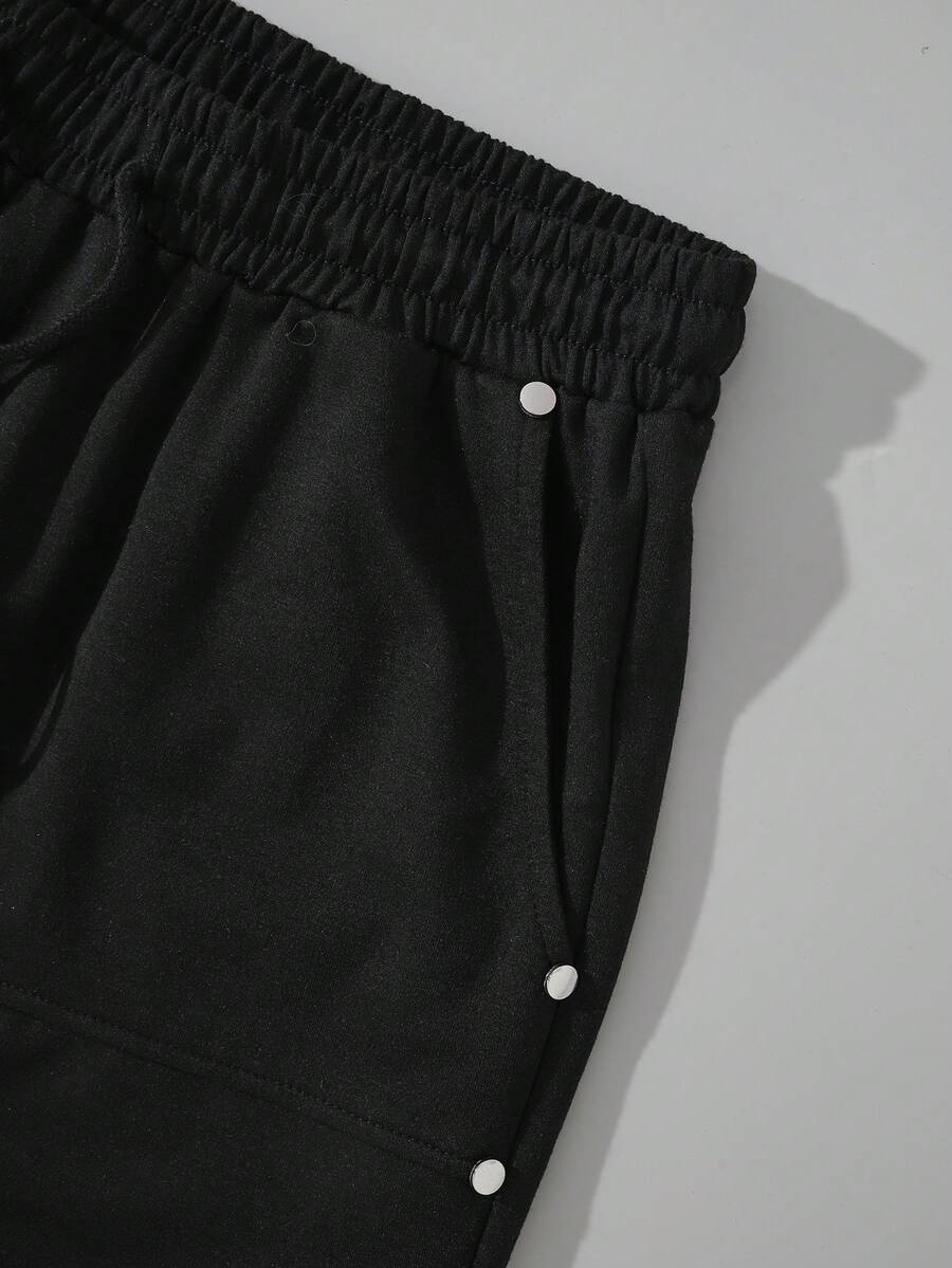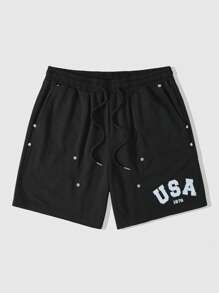 Street Life Herren Shorts mit Kordelzug Taille, Taschen, lässigem Buchstabendruck, Metallieten Nieten, weite Passform