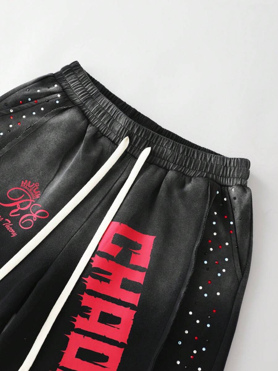 Street Life Herren funkelnde Diamant Buchstaben Muster Loose Shorts mit Kordelzug Taille