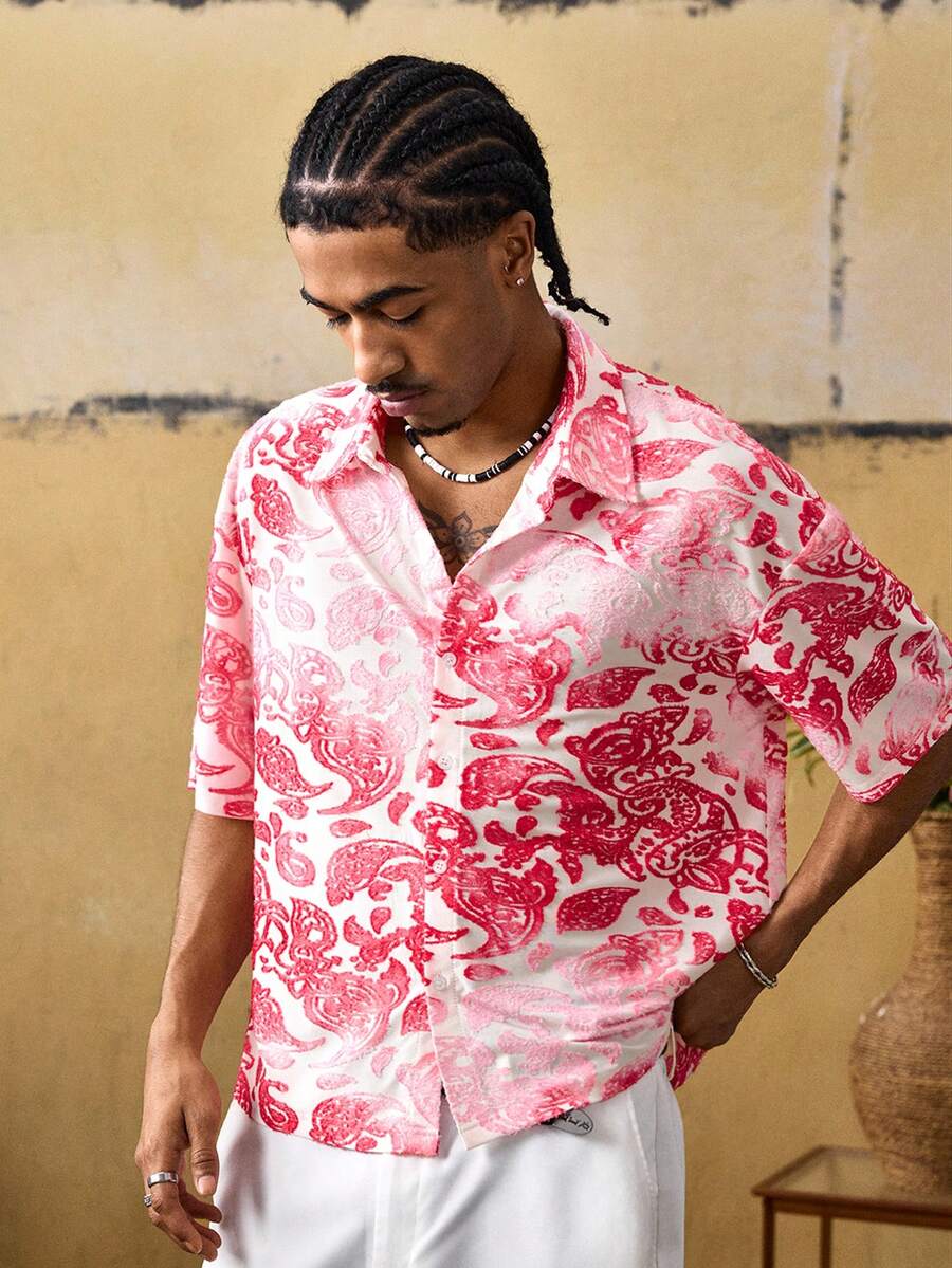 Herren Hemd mit Kentkragen, Jacquard-Muster, Einreiher, vielseitig für den täglichen Gebrauch, Kurzarm