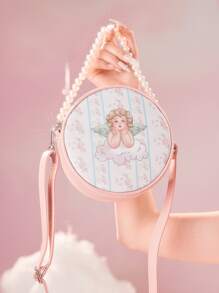 Sweetness Runde Tasche mit Mini Engel & Blume Muster, Kunstperle