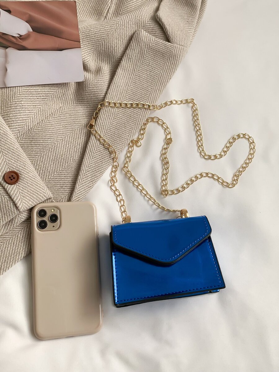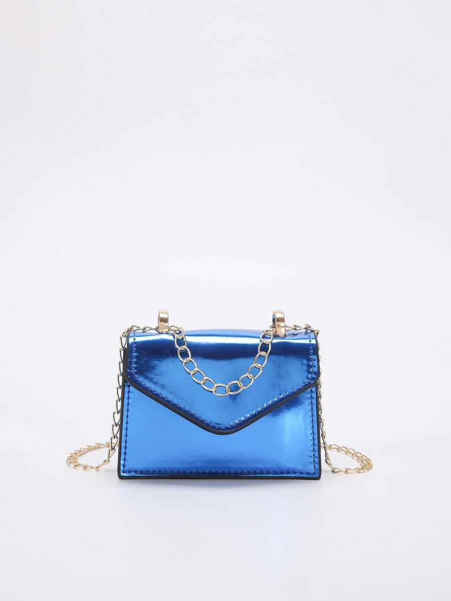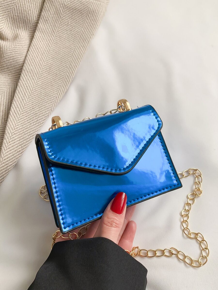 Quadratische Tasche mit Mini metallisch Kette, Klappe