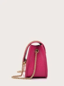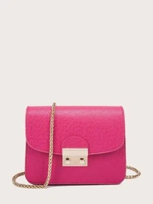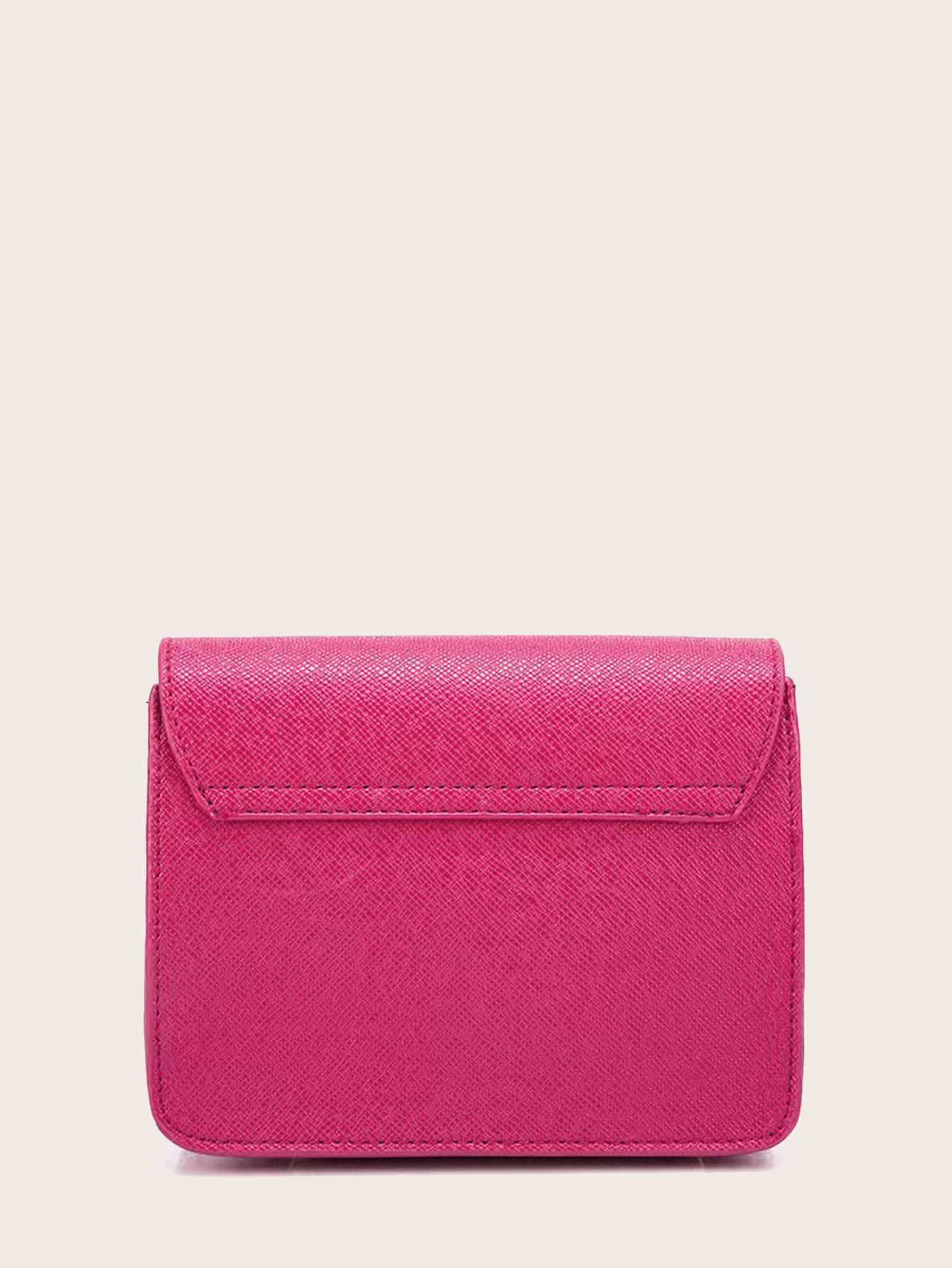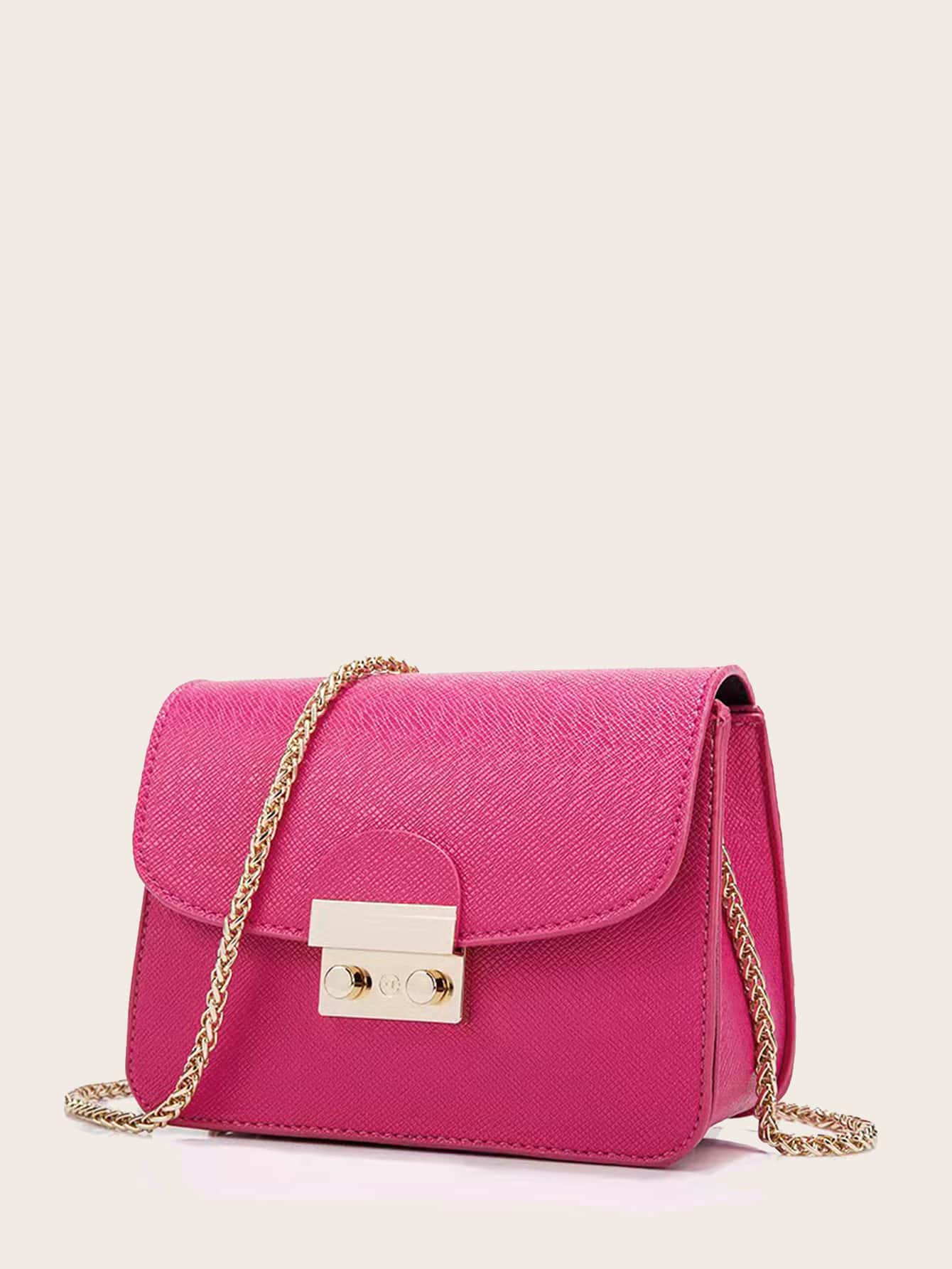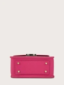Quadratische Tasche mit Mini Neonpink Kette, Klappe