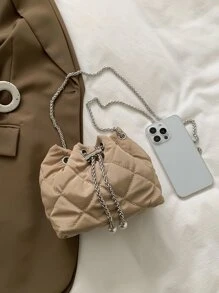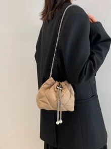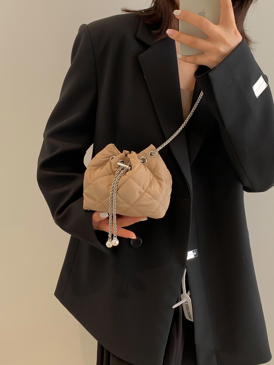 Eimertasche mit Mini Gesteppt Kunstperle Dekor