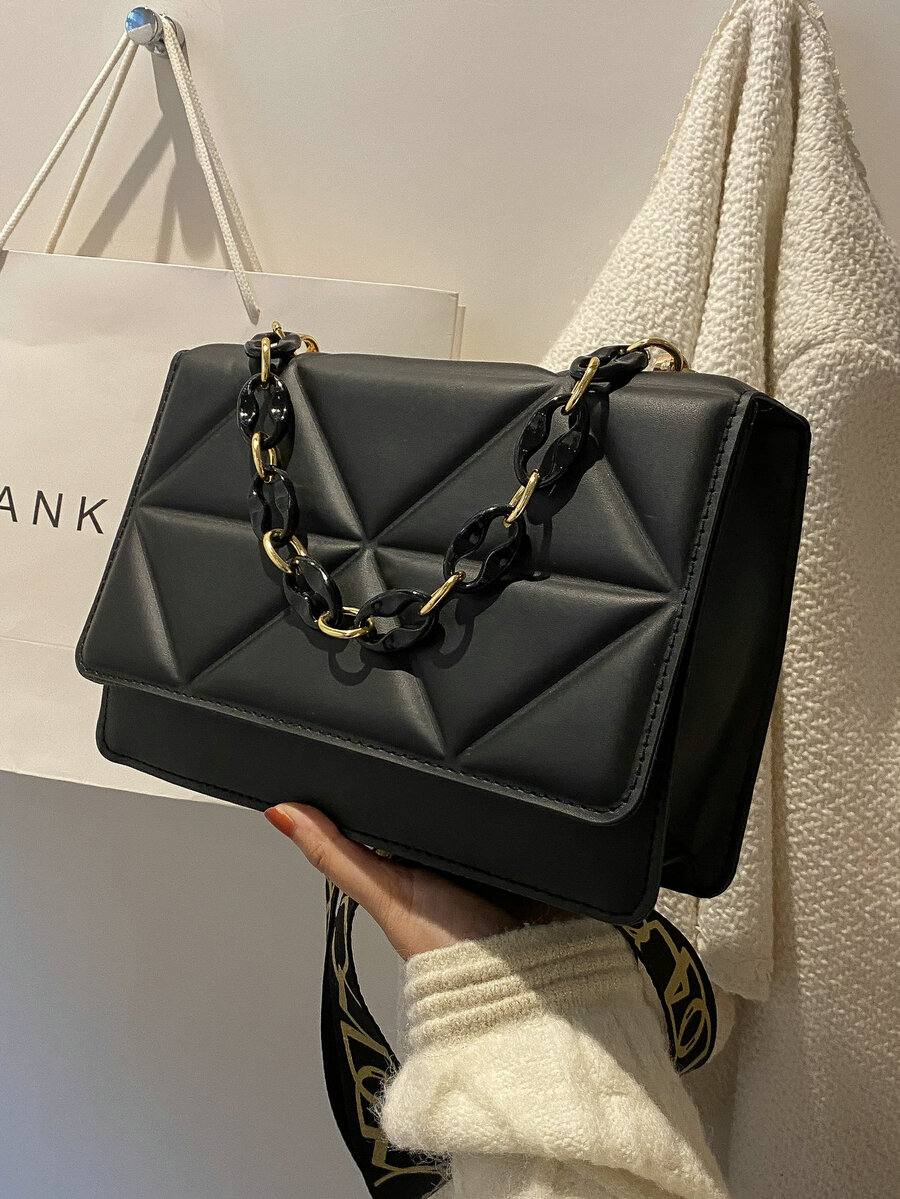 Leichte, geschäftliche, lässige, minimalistische, geprägte quadratische Tasche mit Kette für Teenager, Mädchen, Frauen, Studenten, Neulinge und Angestellte. Perfekt für Büro, Hochschule, Arbeit, Geschäft, Pendeln, Outdoor, Reisen, Ausflüge