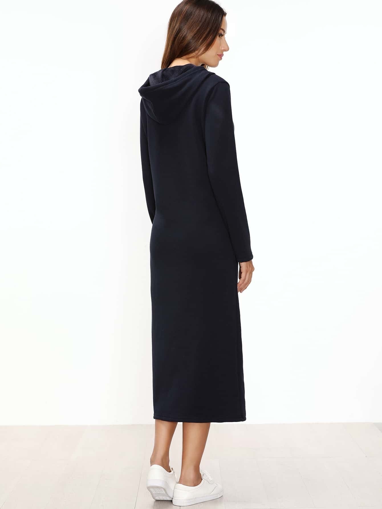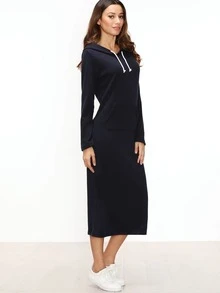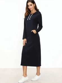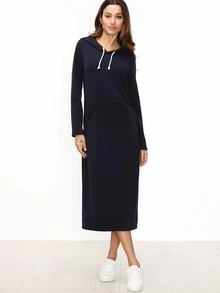 Kapuzensweatshirt Kleid mit Taschen -marine