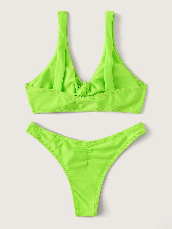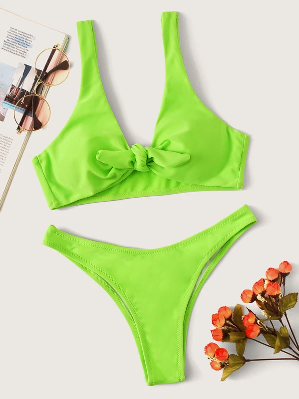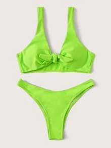Neon Grün Top mit Knoten vorn und Bikini Set mit hohem Beinschnitt