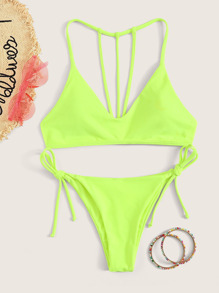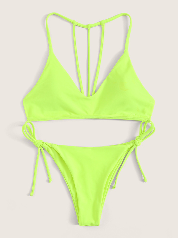 Neon Lime Bikini Set mit seitlichem Band