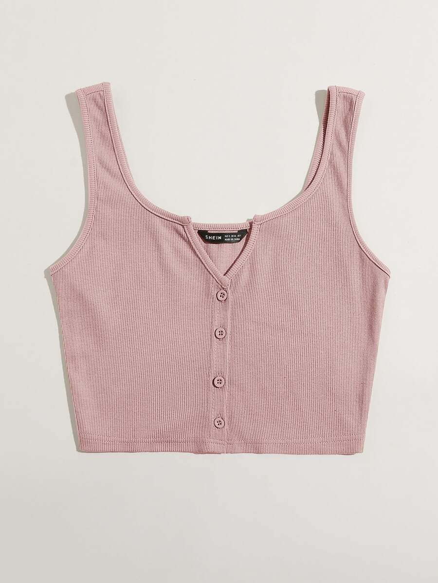 Tank Top mit eingekerbtem Kragen und Knöpfen vorn