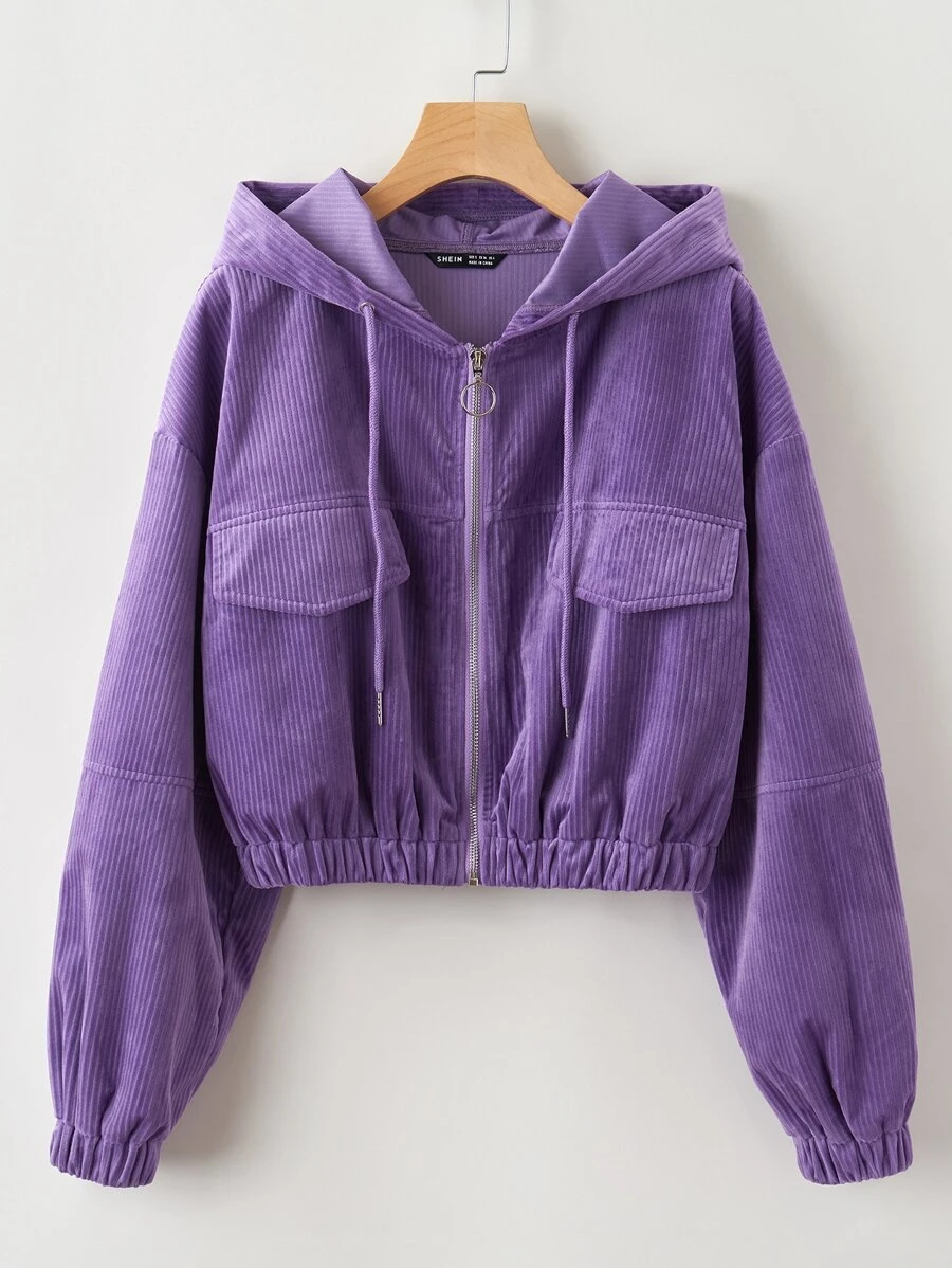 Cord Jacke mit O-Ring, Reißverschluss und Kapuze