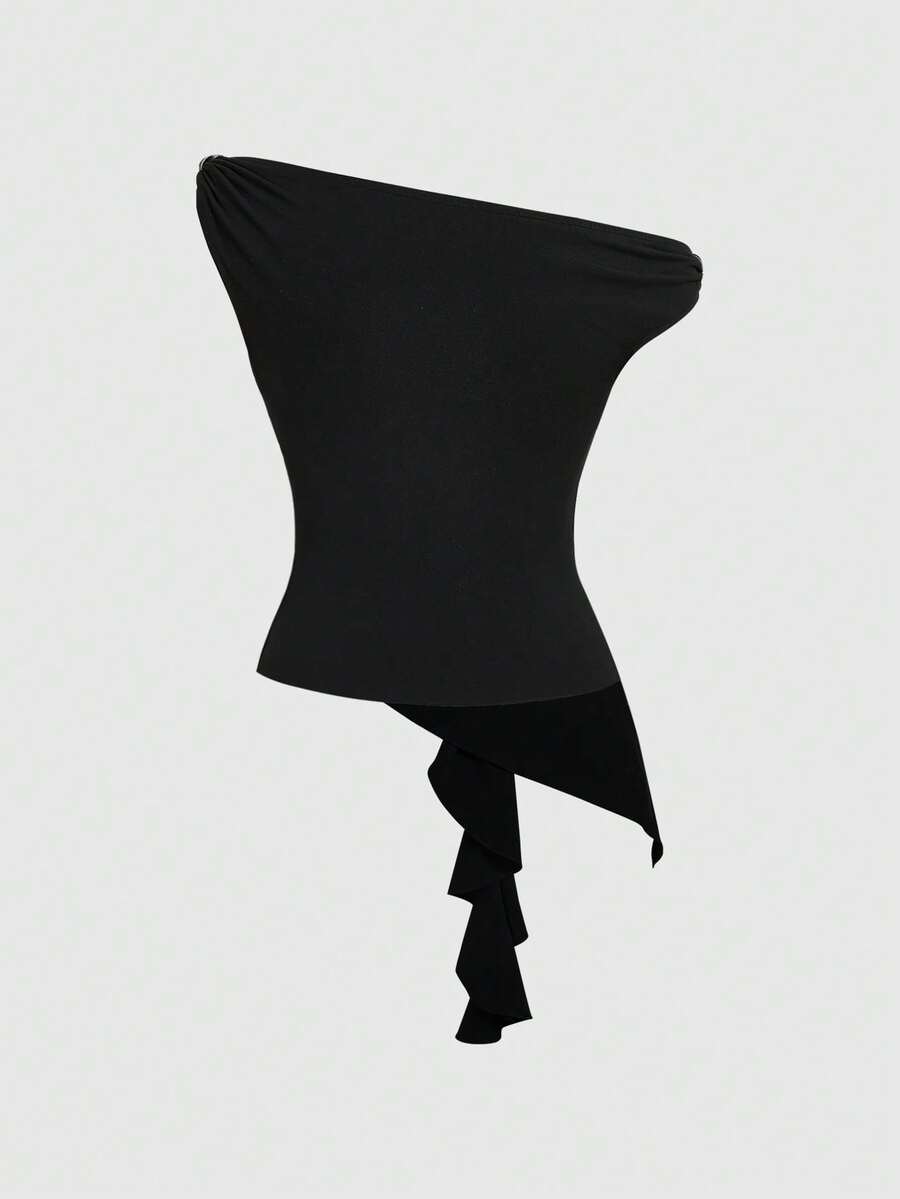Körperbetontes Damen T-Shirt mit schräger Schulter, geraffter Passform und asymmetrischem Saum