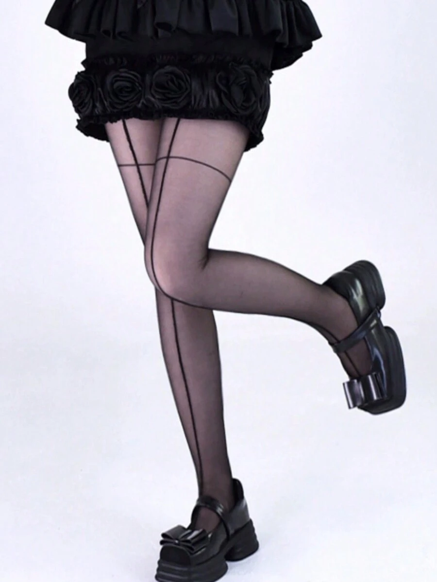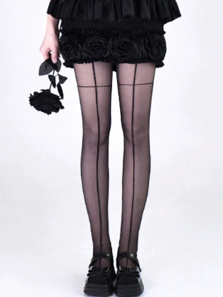 Ein Paar dunkle und verführerische gemusterte Strümpfe