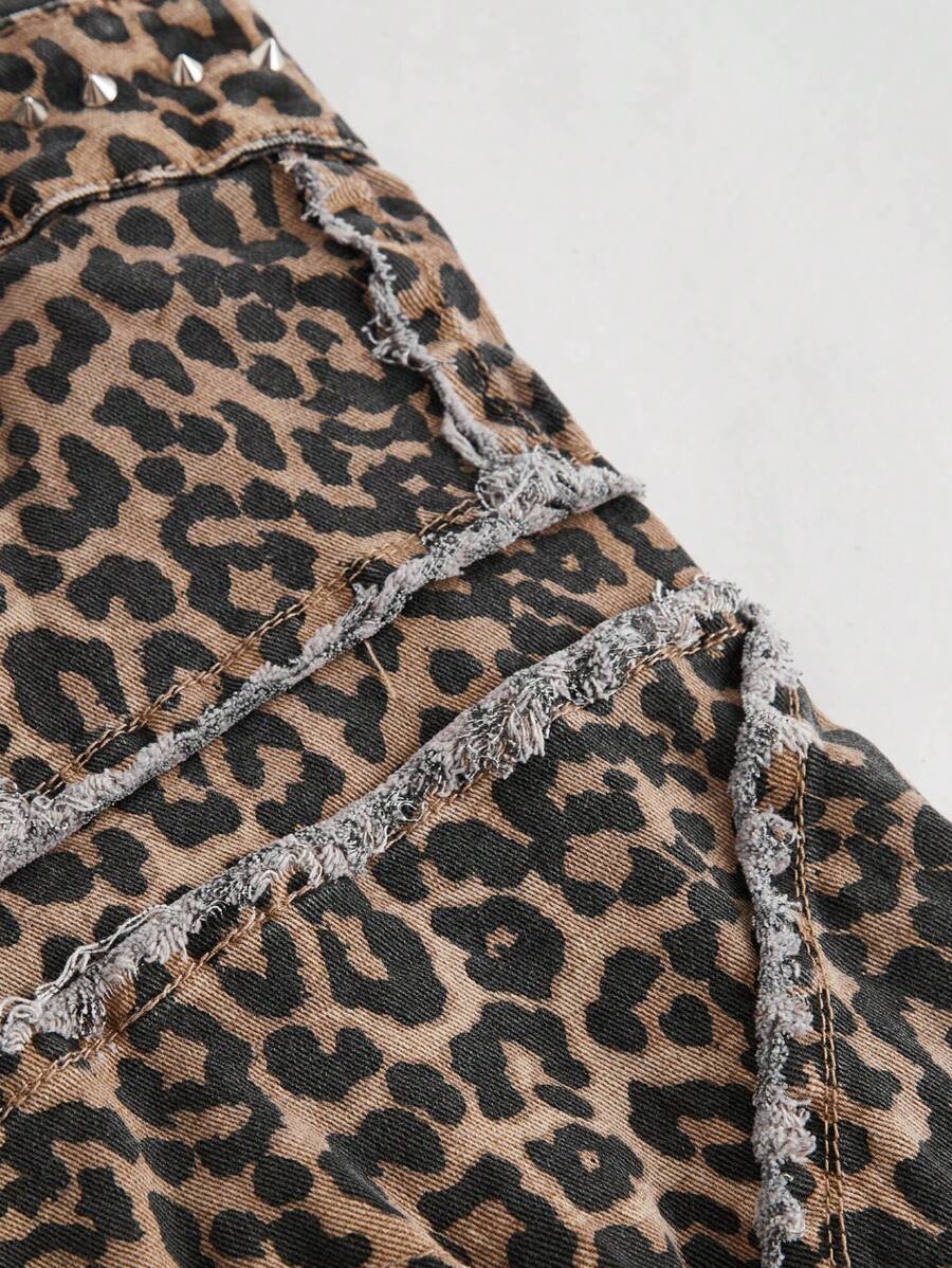 PUNK genietetes Leoparden-Vintage-Stil Jeansbluse für Frauen