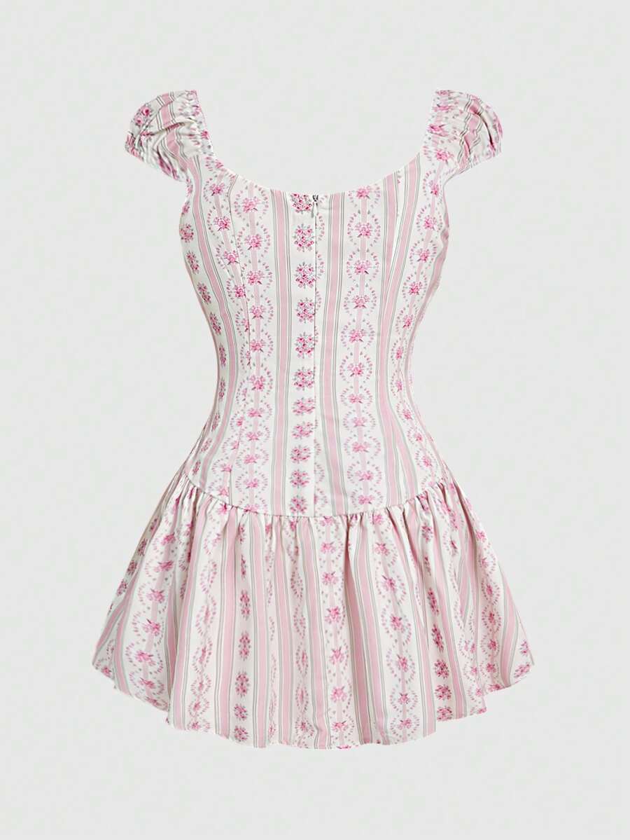 Sweetness Palast Resort Stil Blume Muster Taille Raffung Mini Kleid