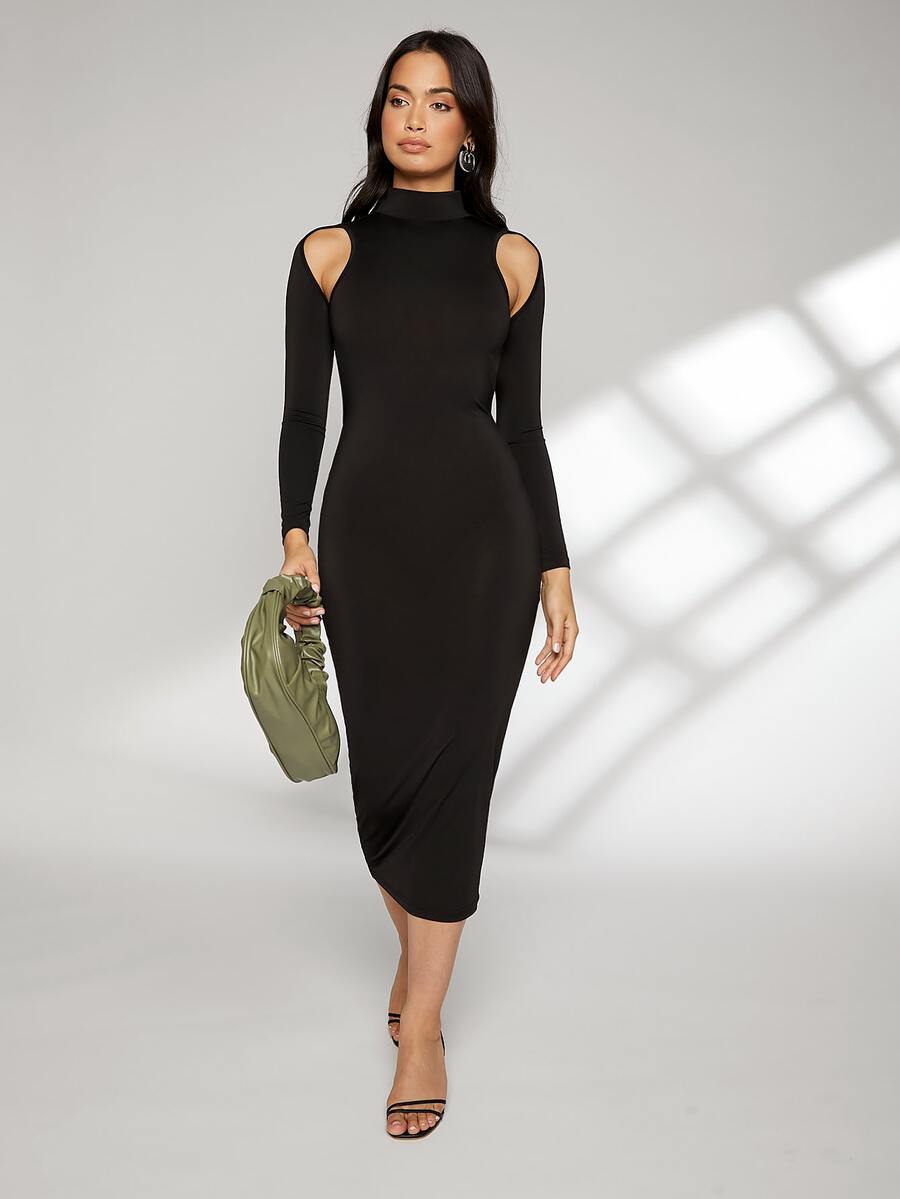 Figurbetontes Kleid mit Perle Detail, Ausschnitt und Stehkragen