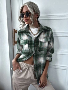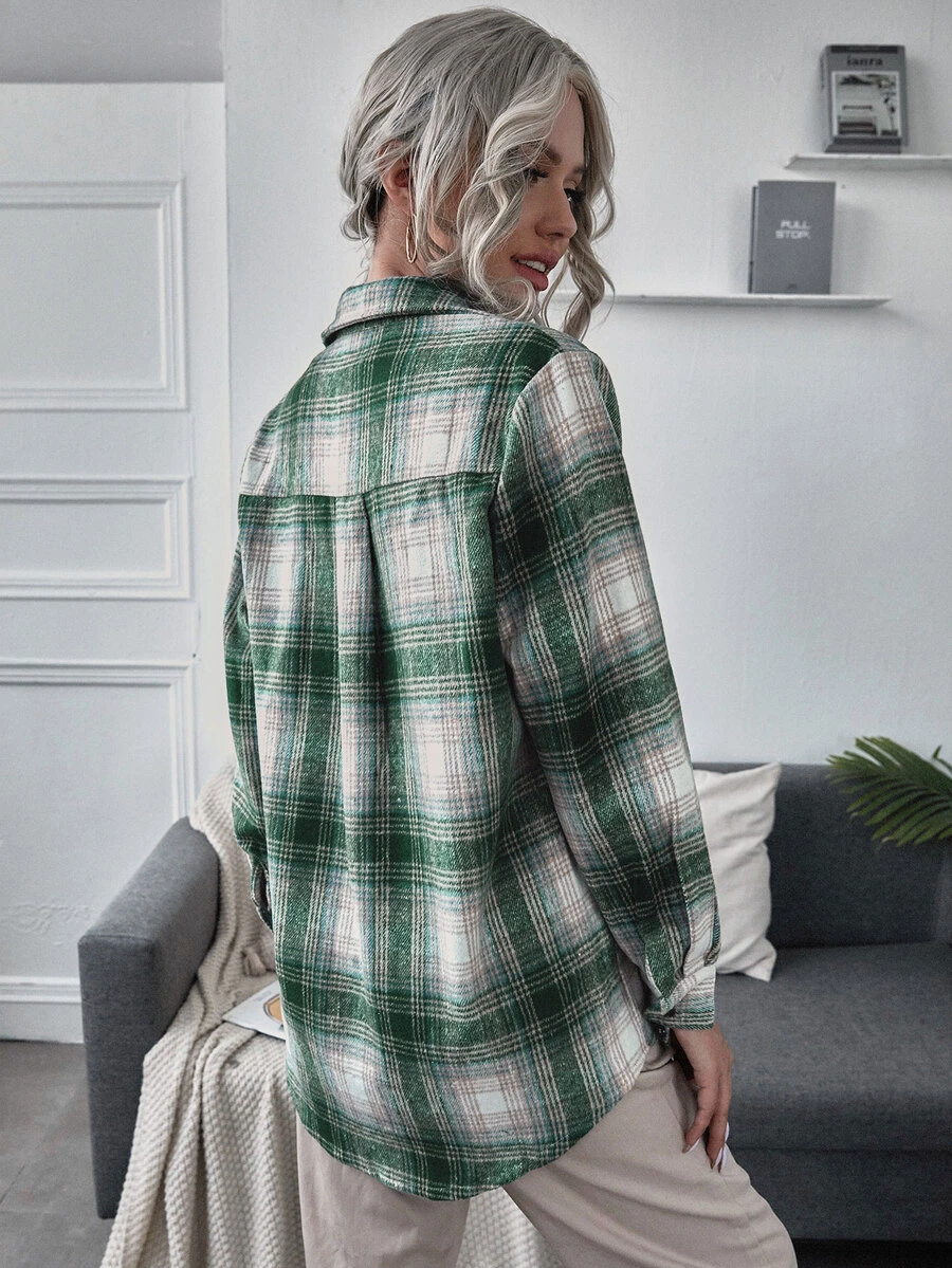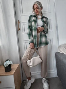 Mantel mit Karo Muster, Knöpfen und gebogenem Saum