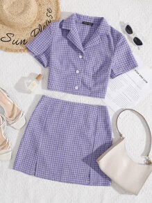Crop Bluse mit Plaid Muster & Schlitz Detail Rock Set