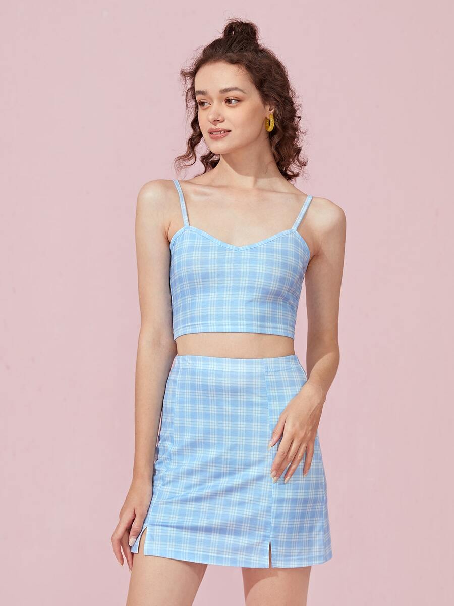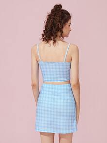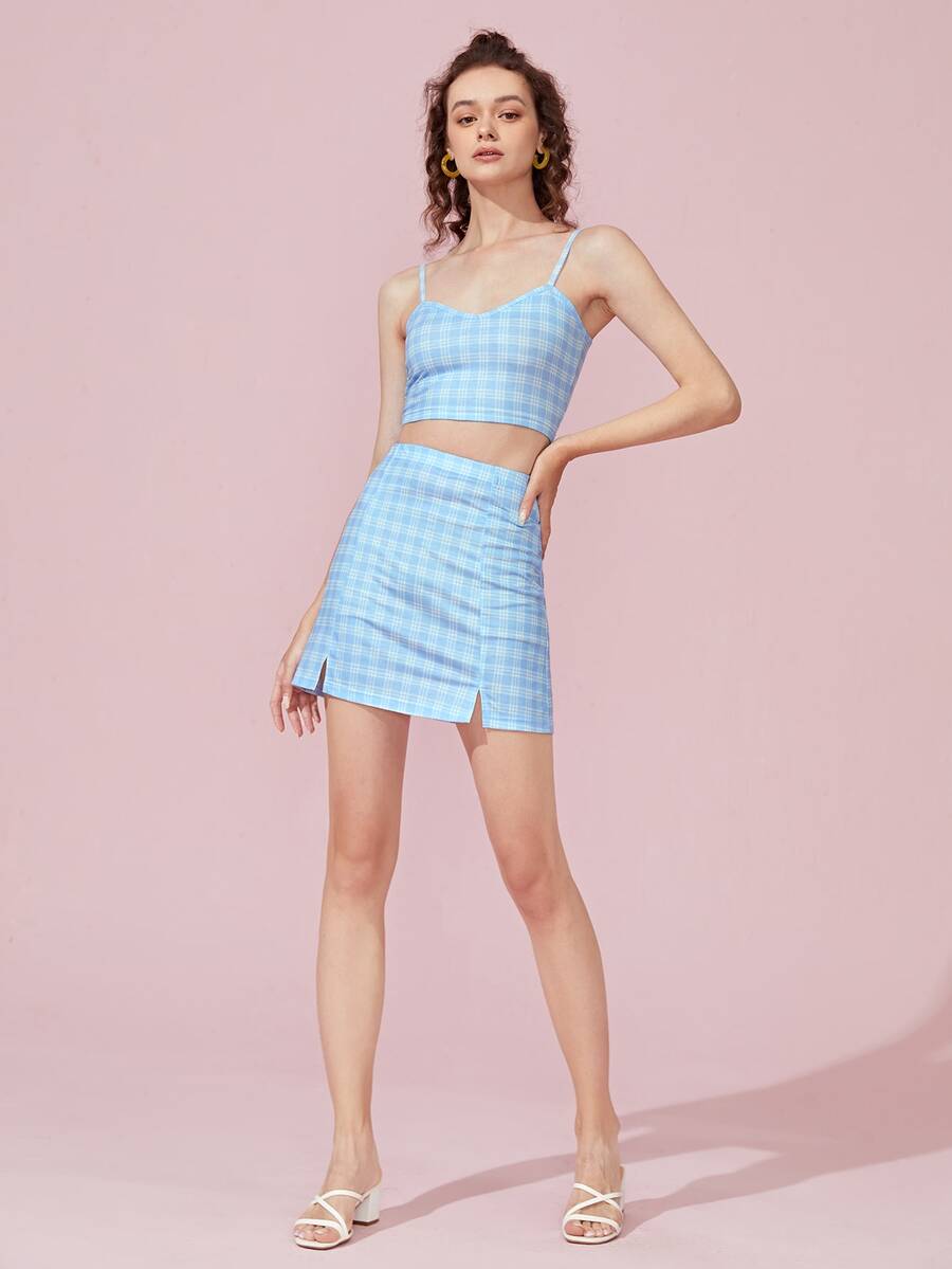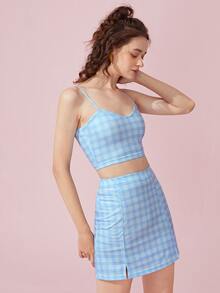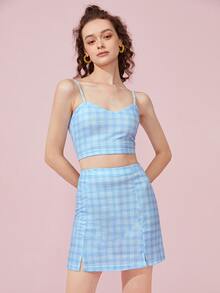 Crop Cami Top mit Plaid Muster & Rock mit Schlitz
