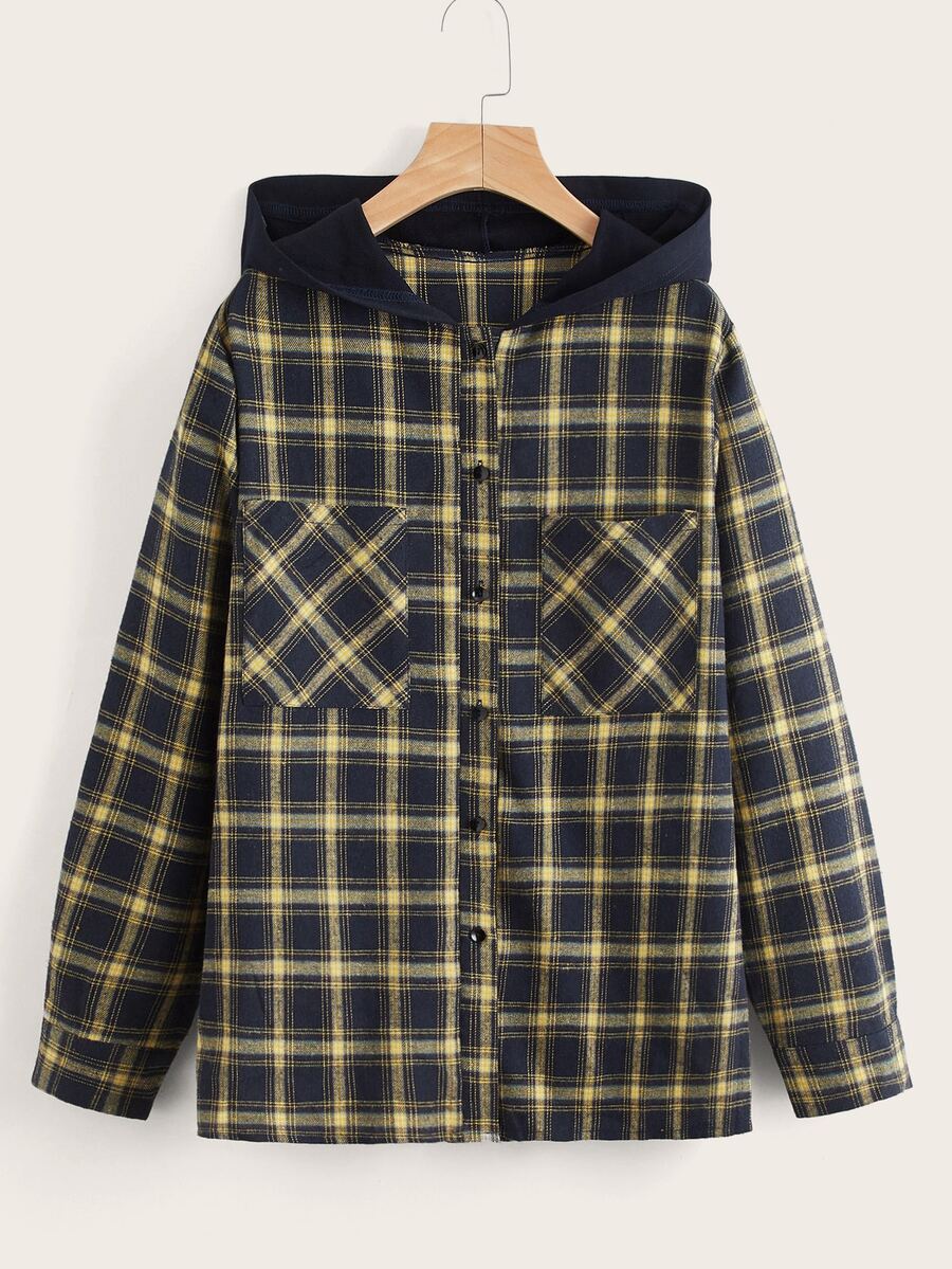 Bluse mit Plaid Muster, Kapuze
