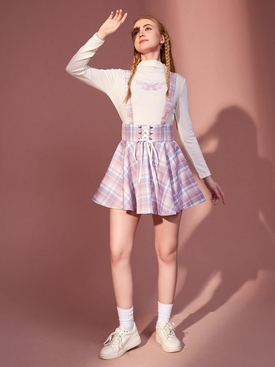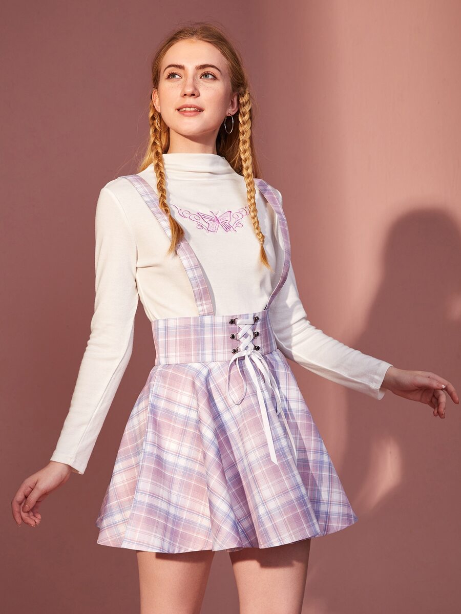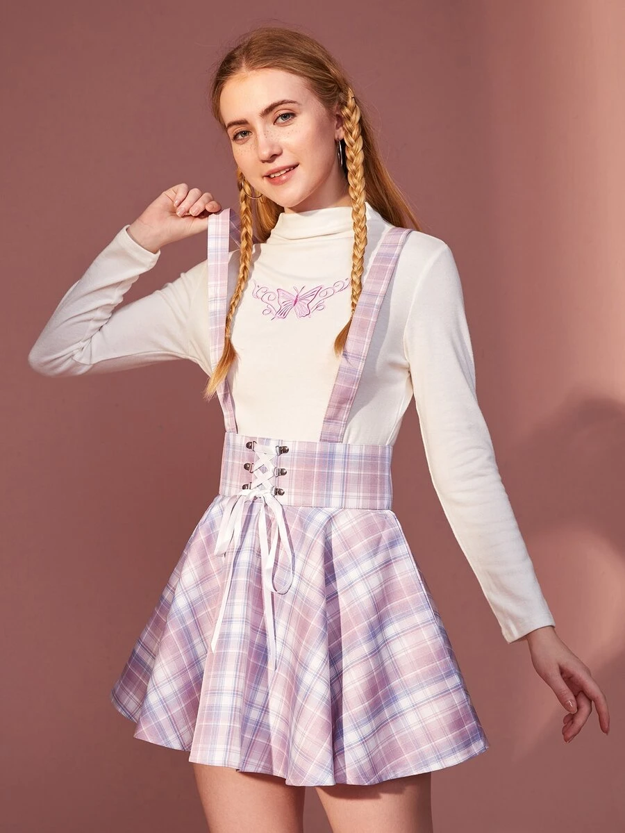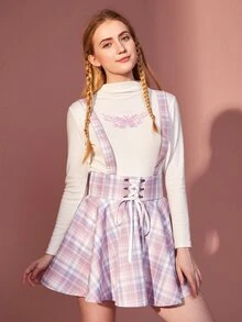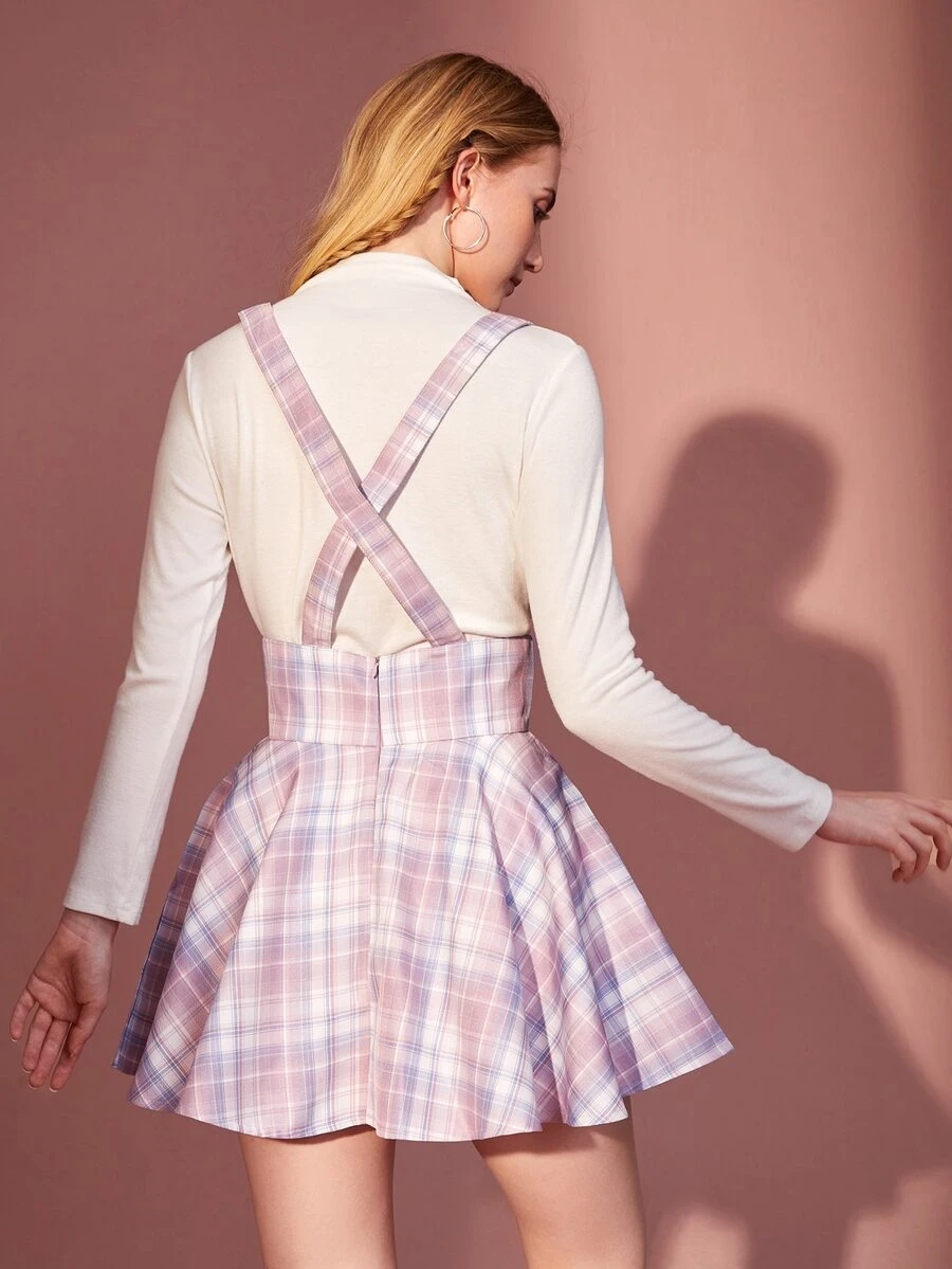 Trägerrock mit Plaid Muster, Band