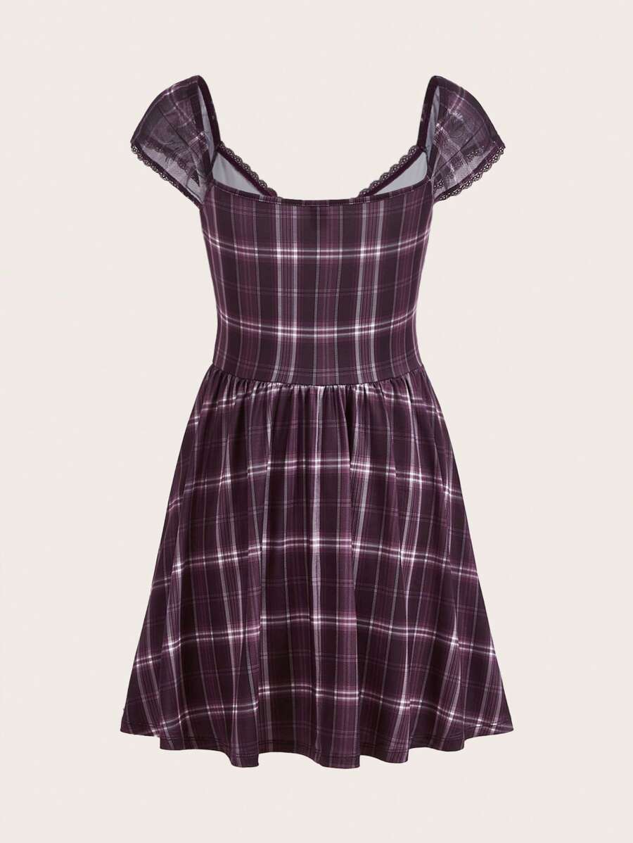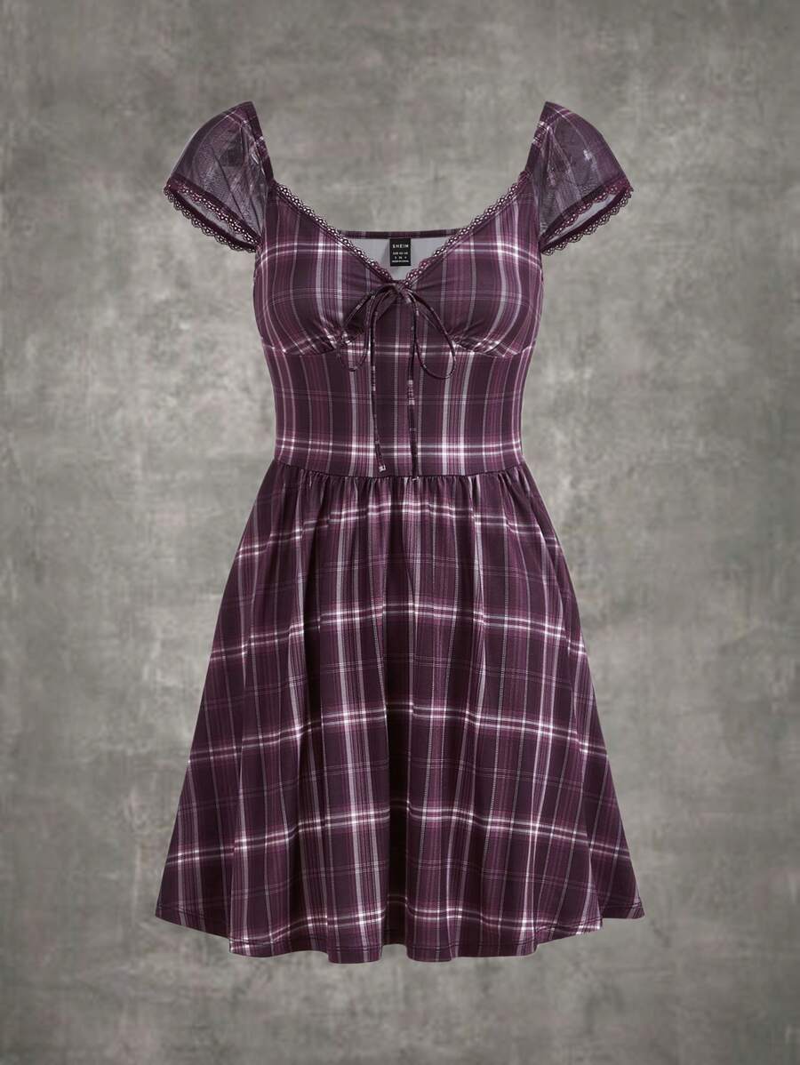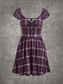 Kleid mit Plaid Muster, Band vorne