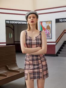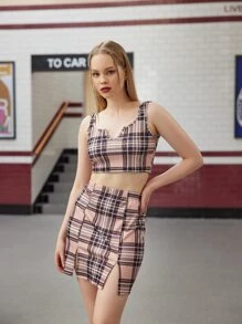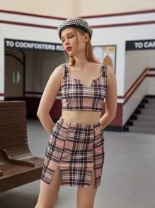 Tank Top mit Plaid Muster & Rock mit Schlitz am Saum