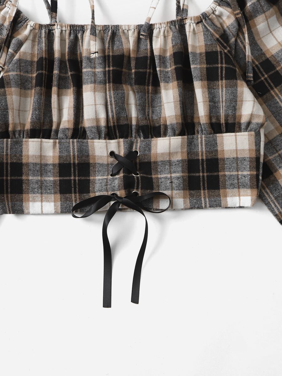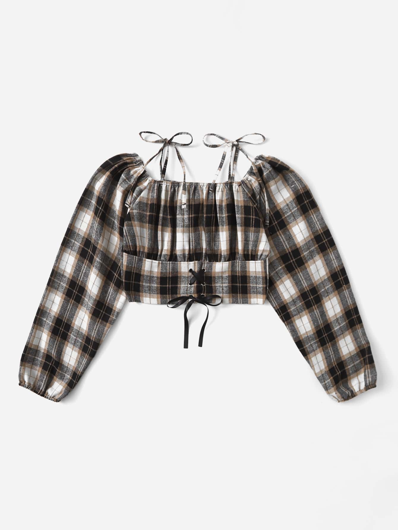 Bluse mit Plaid Muster, Band auf Schulter, Band