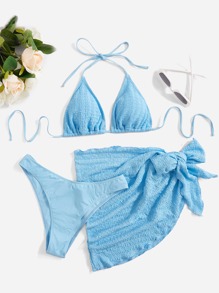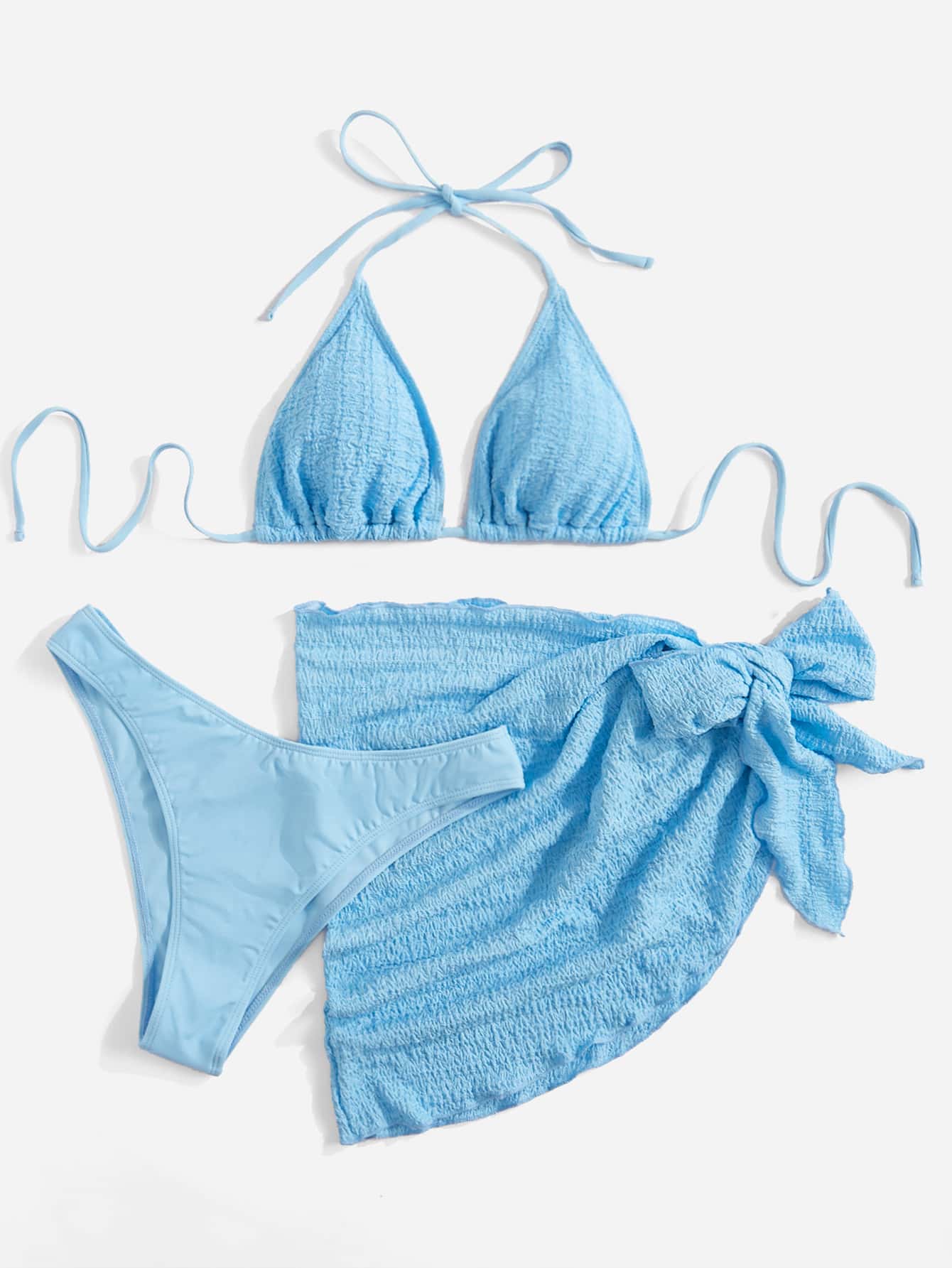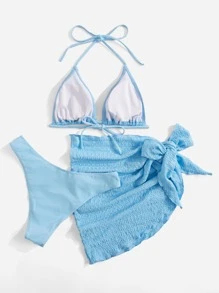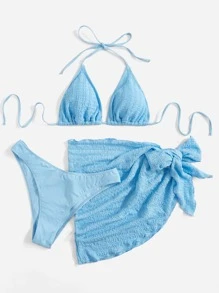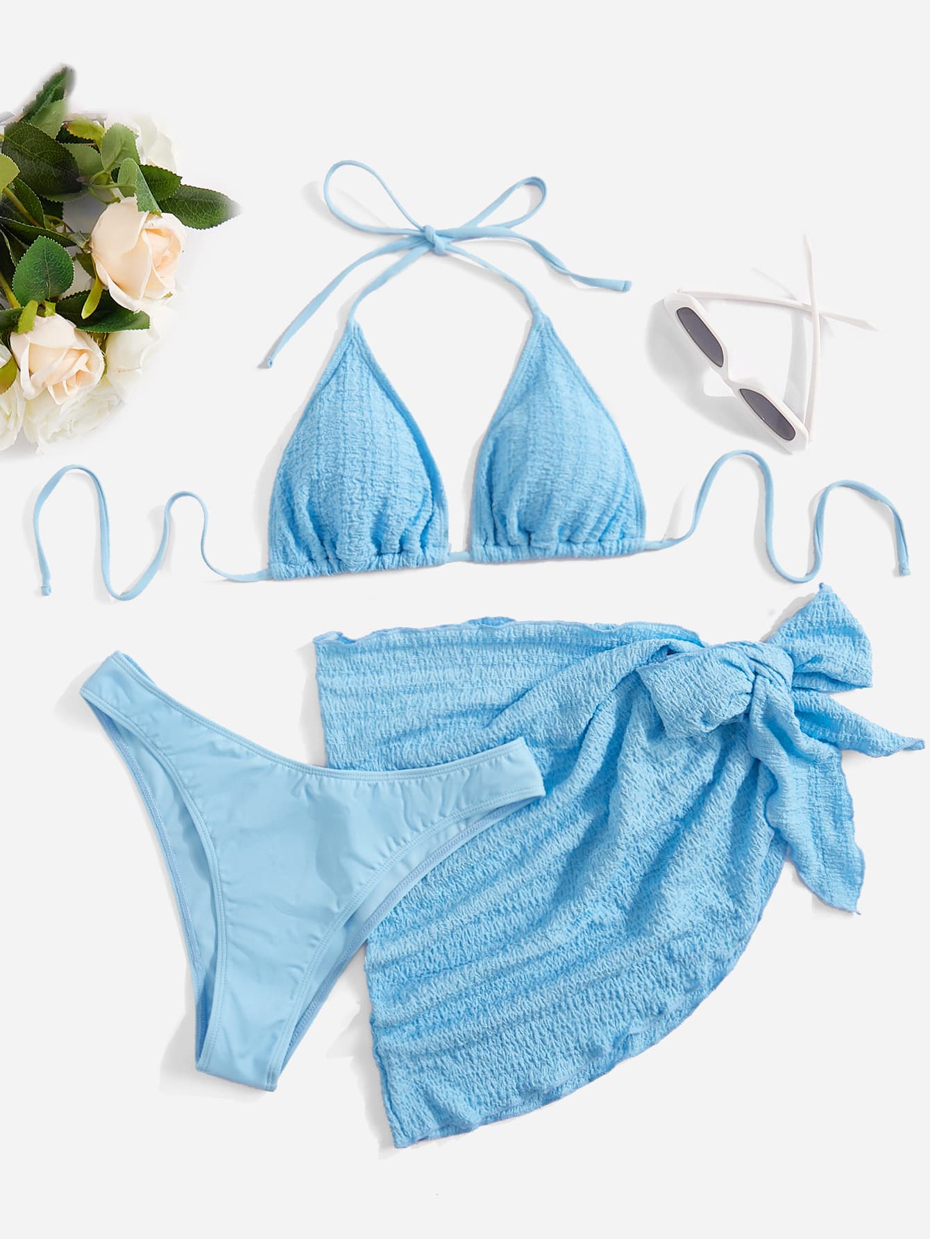 Einfaches Halter Triangle Sommer Beach Bikini Set mit Strandrock
