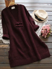 Strickkleid mit tiefem V-Ausschnitt und Delphin Saum