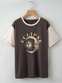 T-Shirt mit Buchstaben, Sonne & Mond Muster