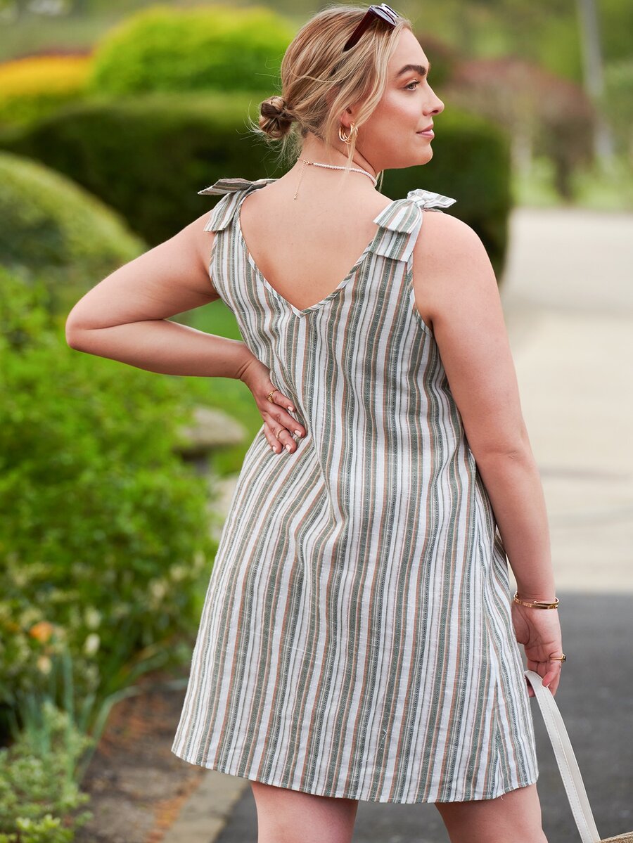 Große Größen 1 Stück Kleid mit Knoten auf Schulter und Streifen