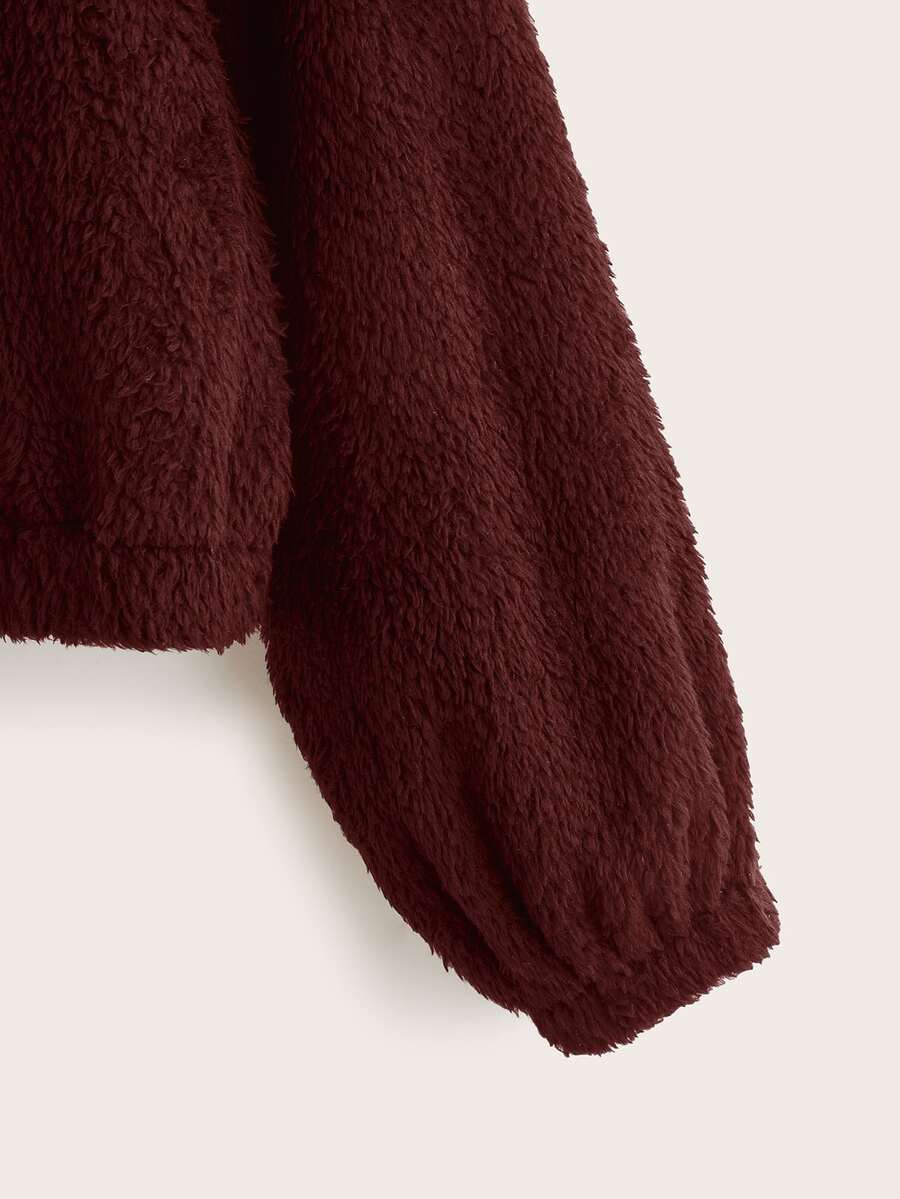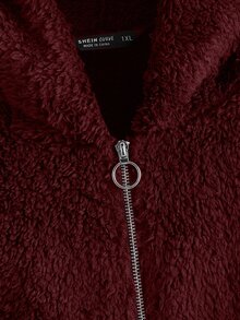 Teddy Jacke mit 3D Ohren Dekor und Kapuze