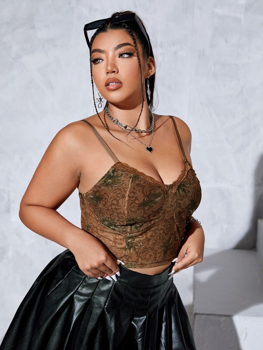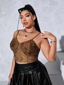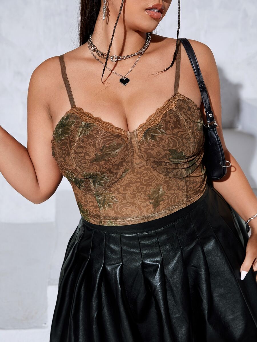 Crop Cami Top mit Blume Muster, Kontrast Spitzen
