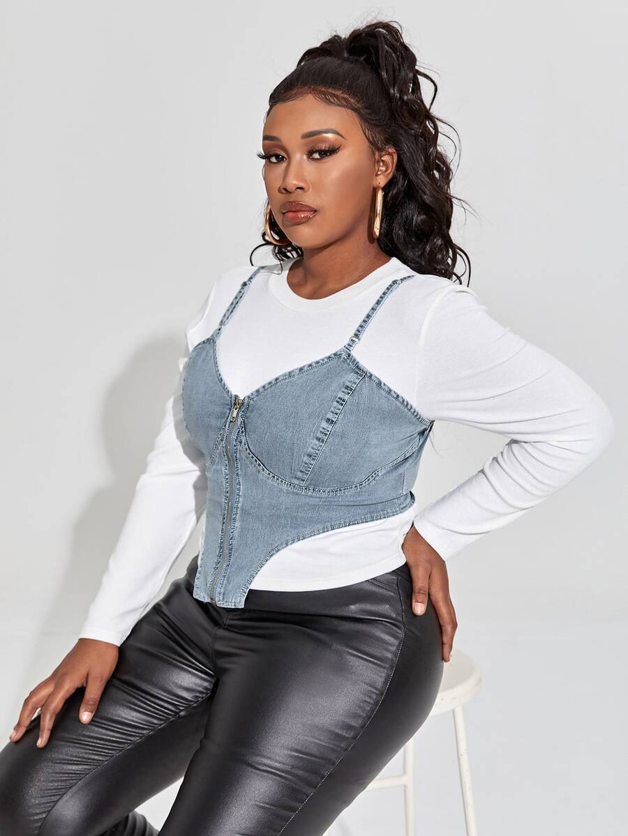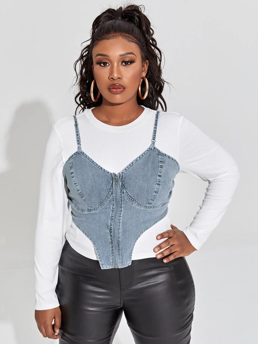 Cami Top mit asymmetrischem Saum, Denim & T-Shirt