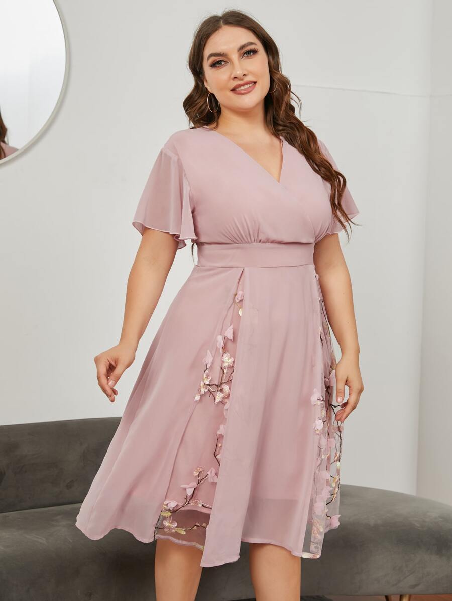 Midi Kleid mit Pflanzen Stickereien und Applikation