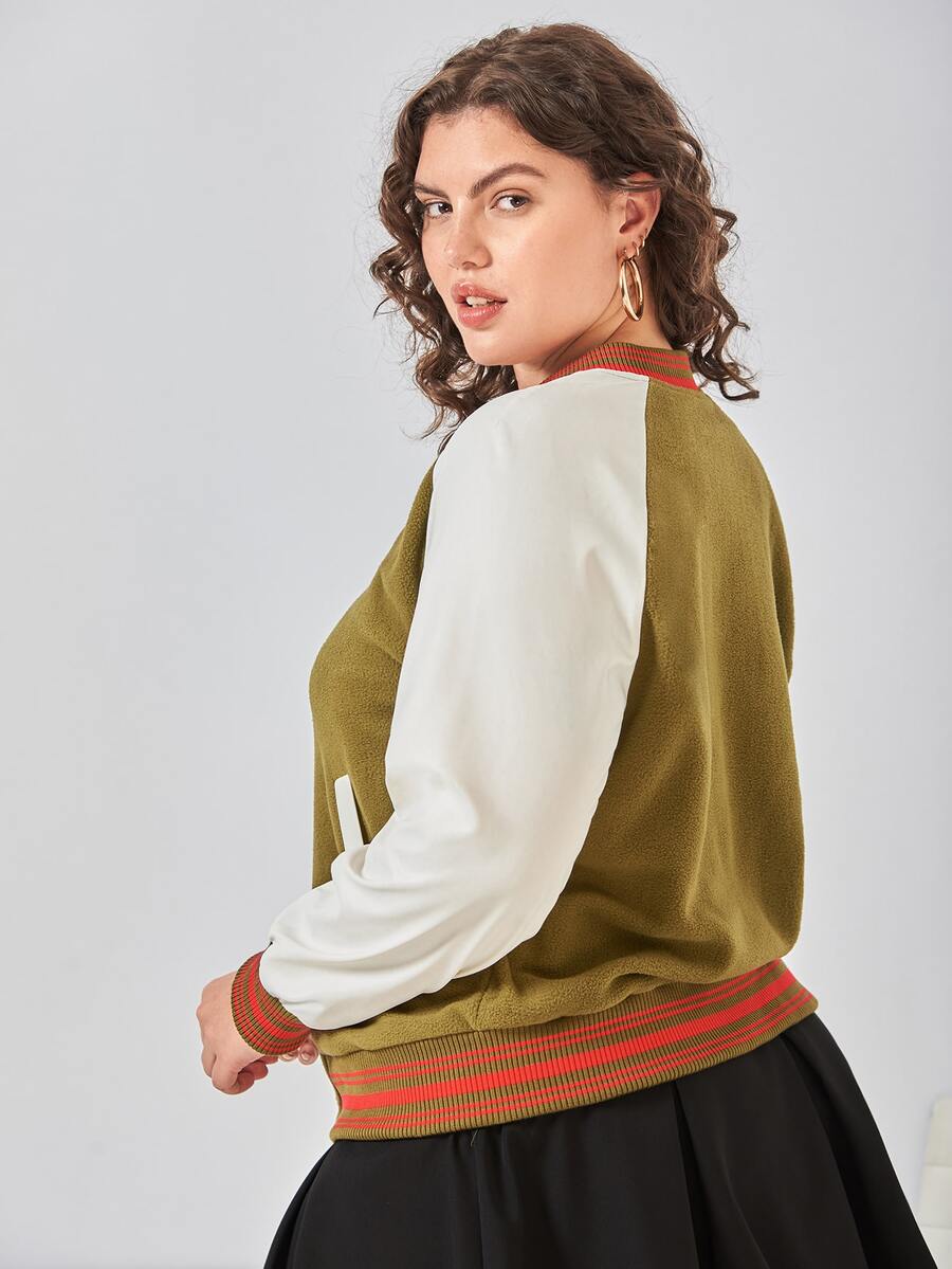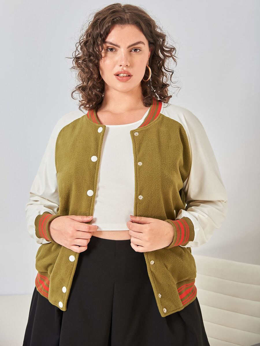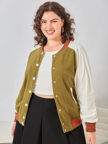 College Jacke mit Farbblock, Knopf vorne