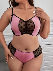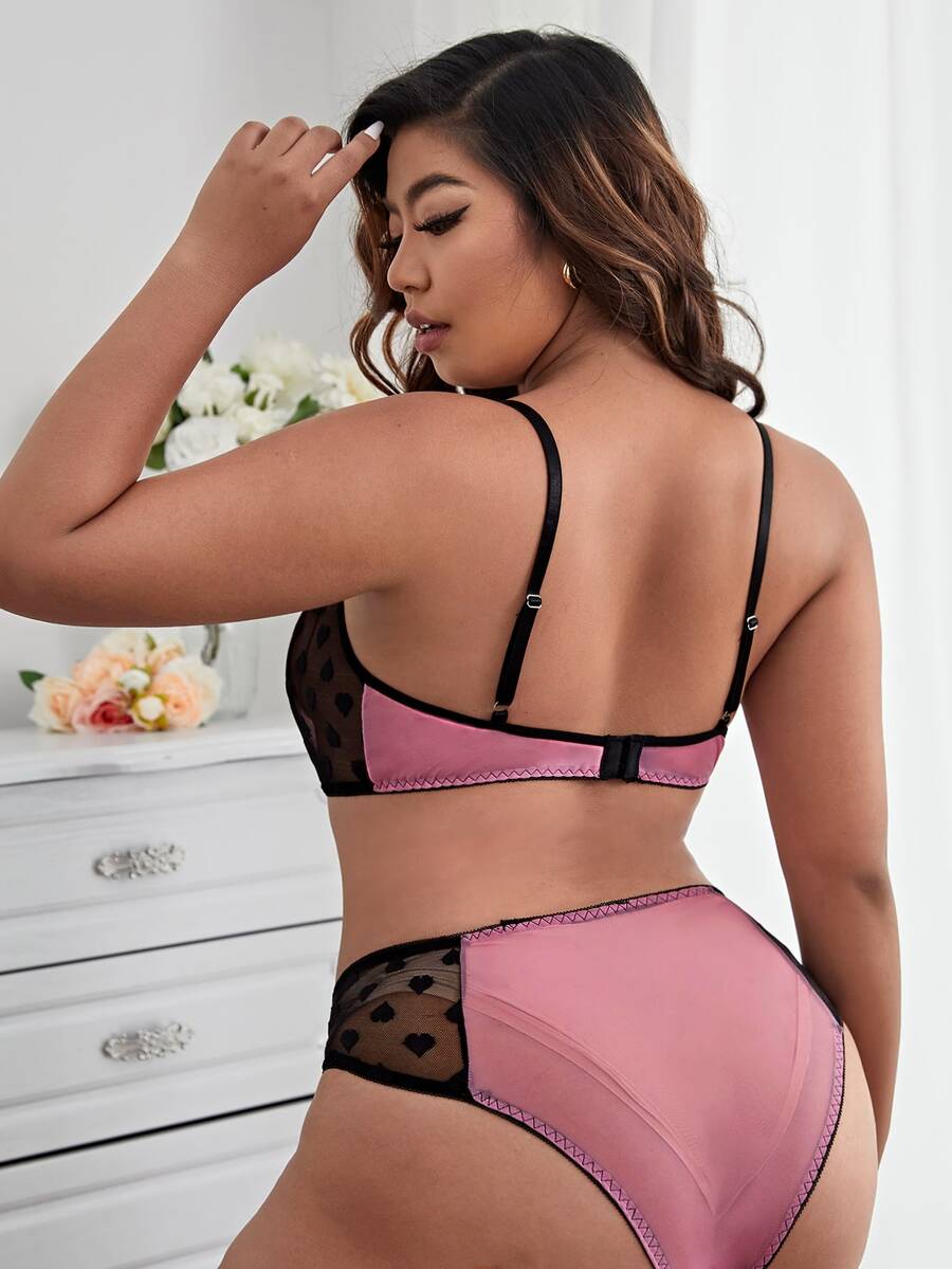 Dessous Set mit Kontrast Dobby-Mesh, Bügel