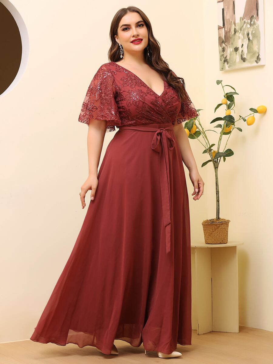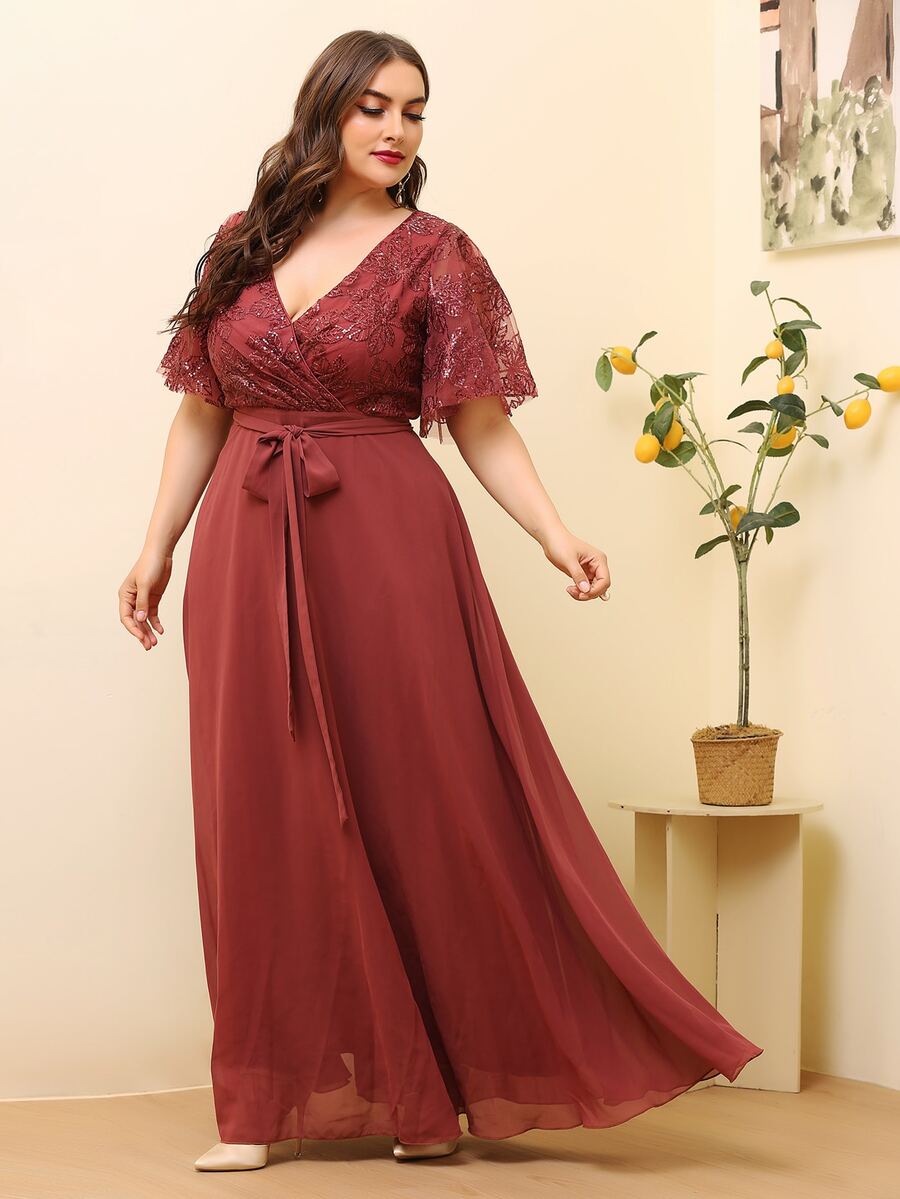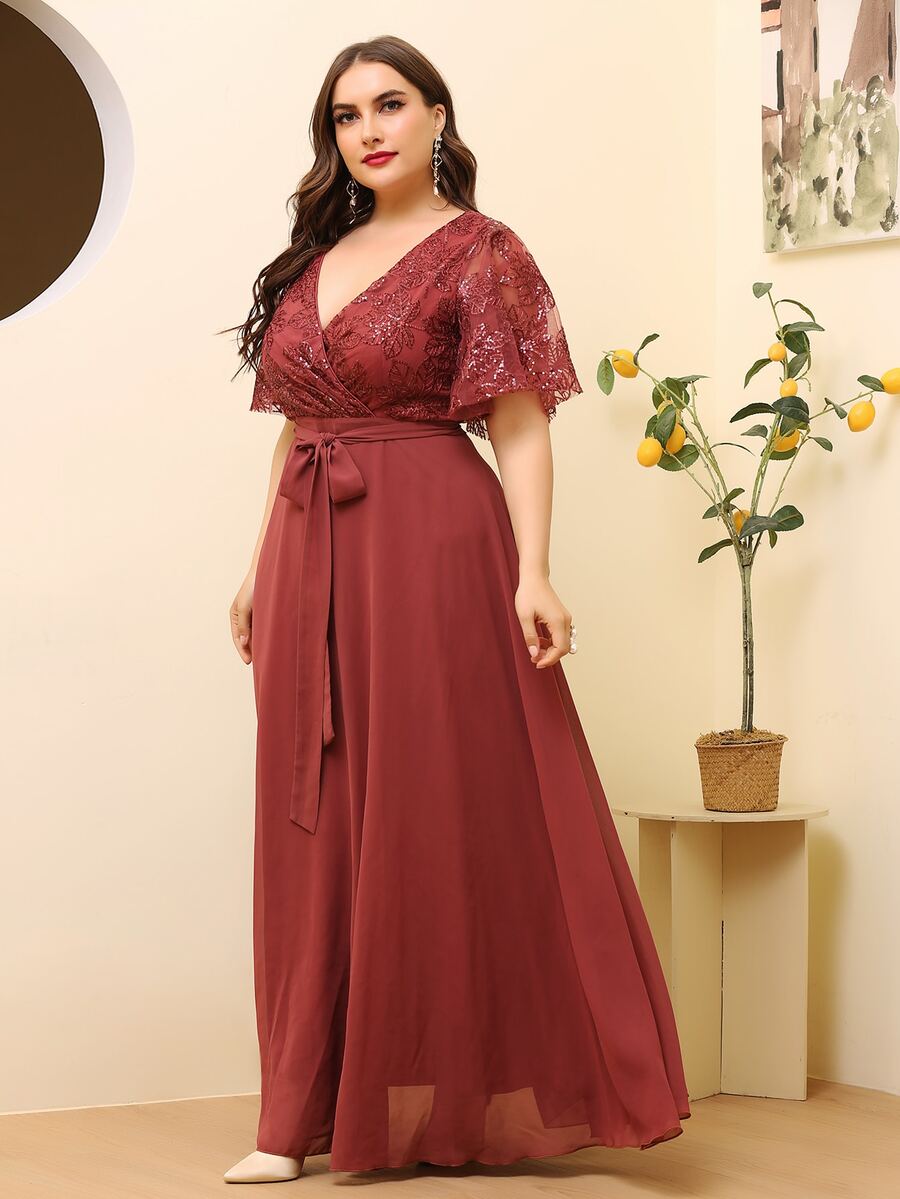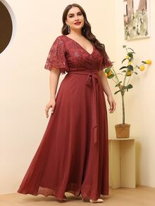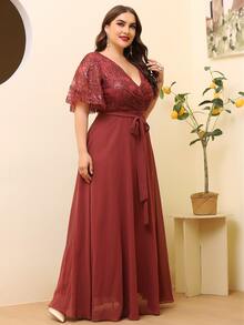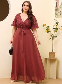 Große Größen Kleid mit Kontrastmesh und Gürtel