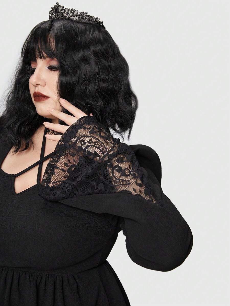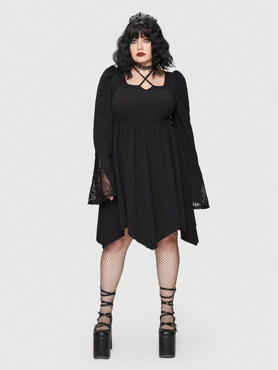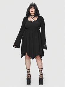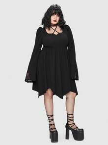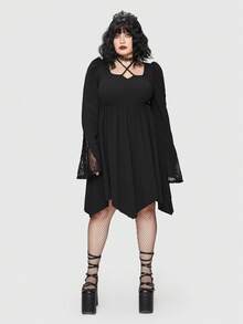 Kleid mit Criss-Cross, Band hinten, Volant Ärmeln, Zipfelsaum,