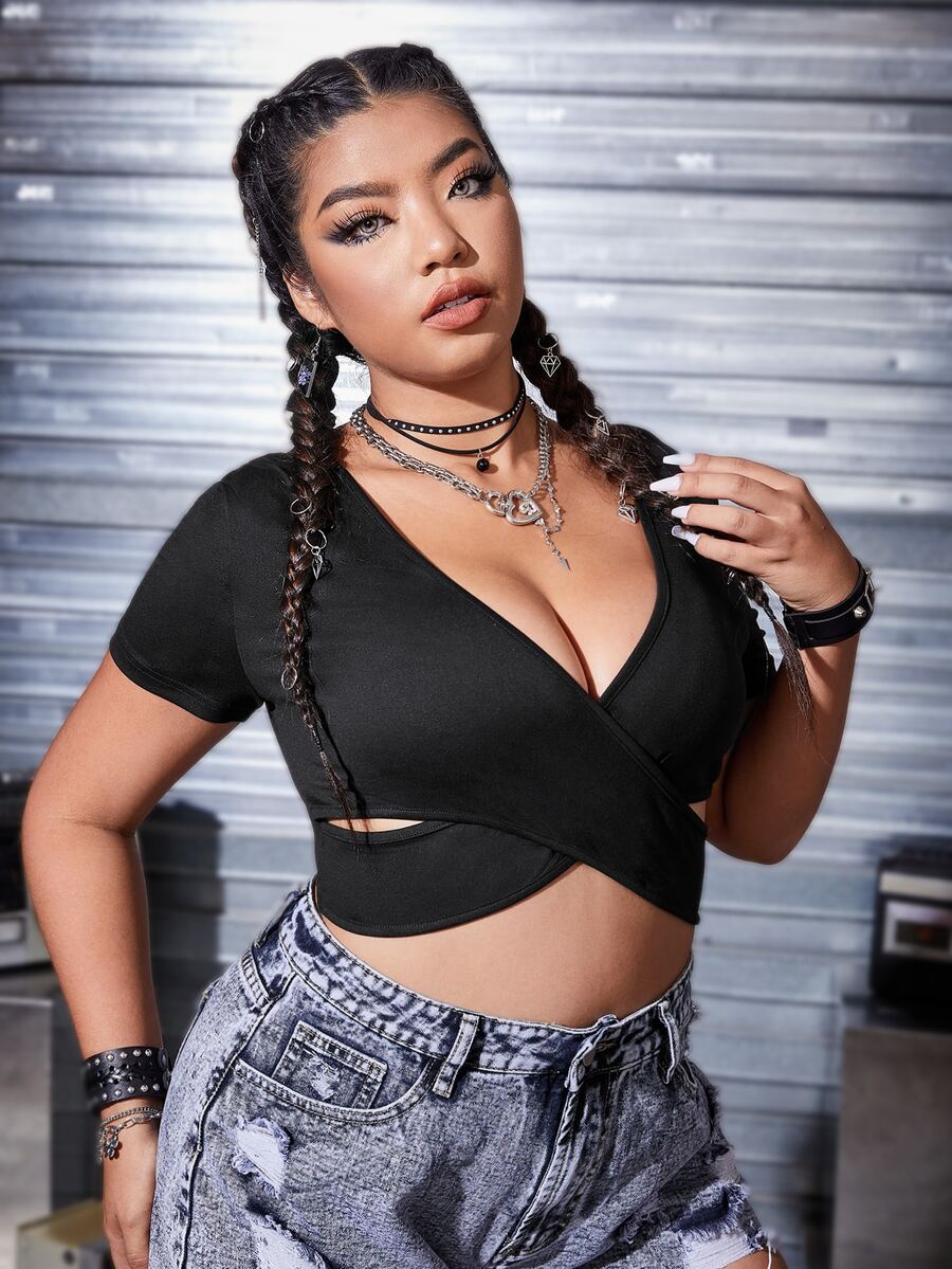 Crop T-Shirt mit Ausschnitt, Kreuzgurt vorne