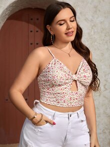 Cami Top mit Blümchen Muster, Ausschnitt, Rüschen
