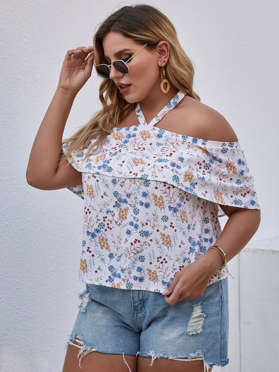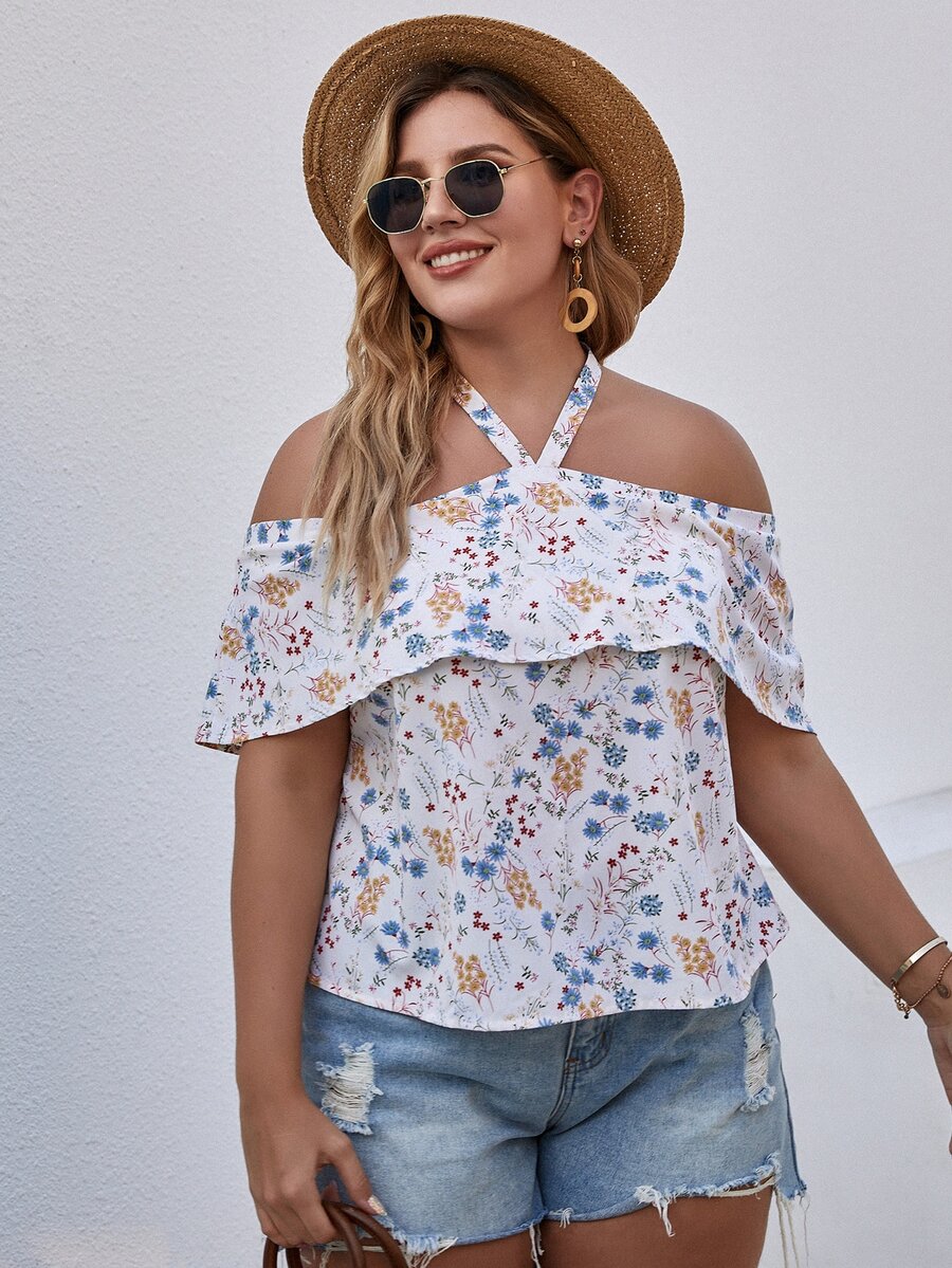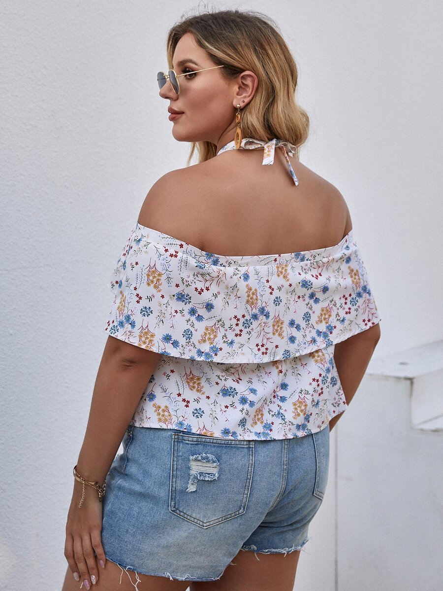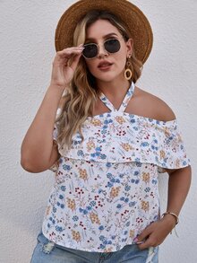 Bluse mit Blümchen Muster, Neckholder und Falten