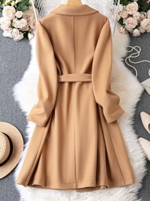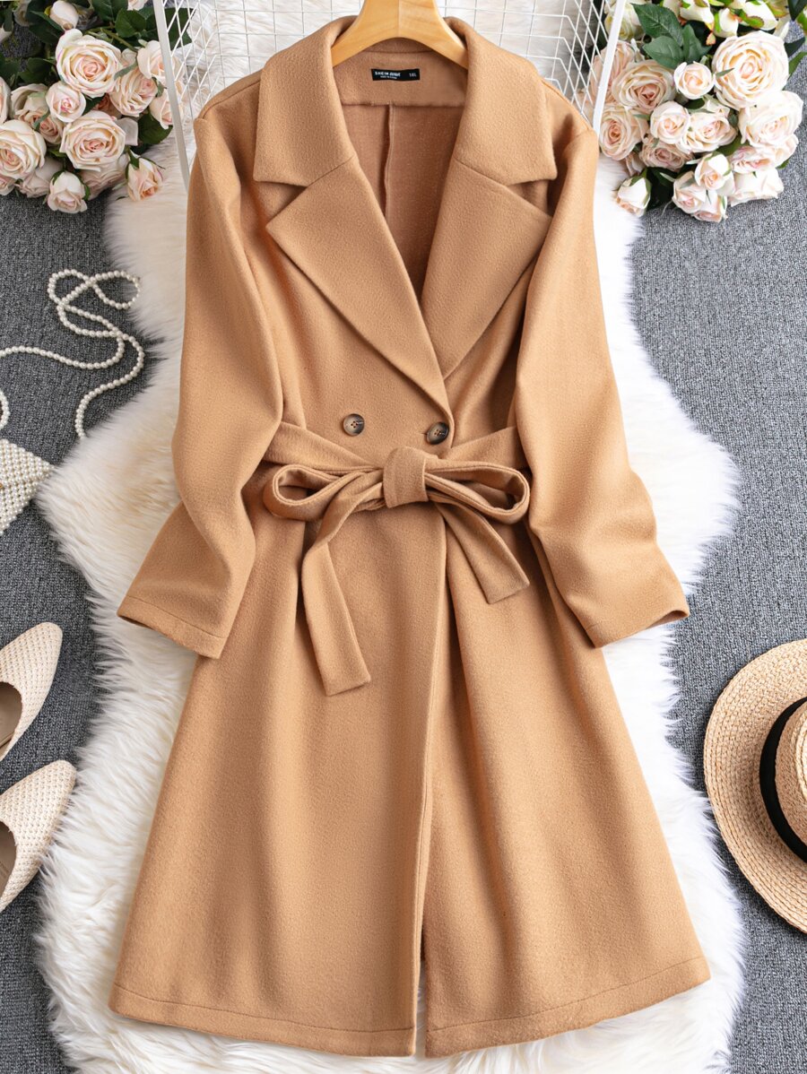 Mantel mit doppelten Knopfleisten, Revers, Gürtel
