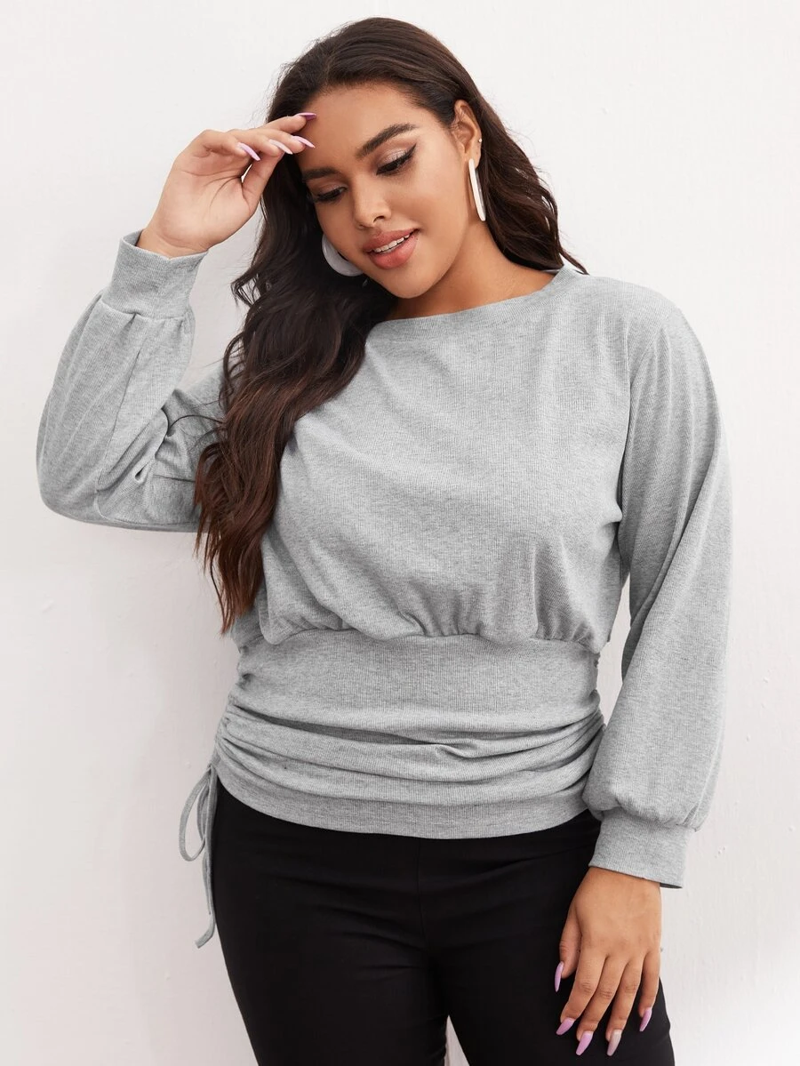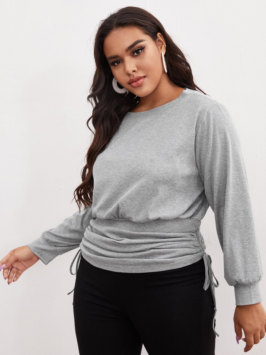 Sweatshirt mit seitlichem Schnürzug, Rüschen