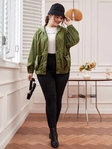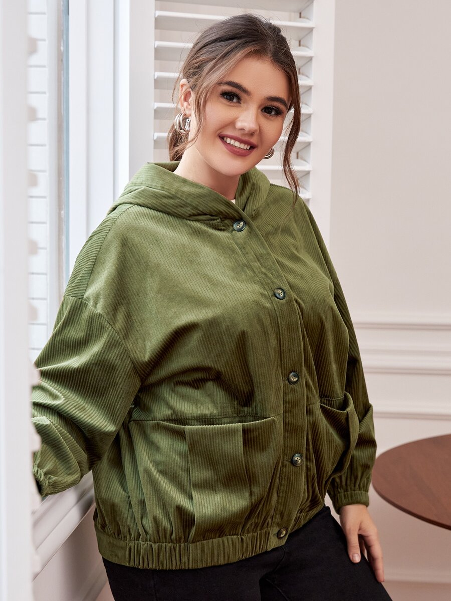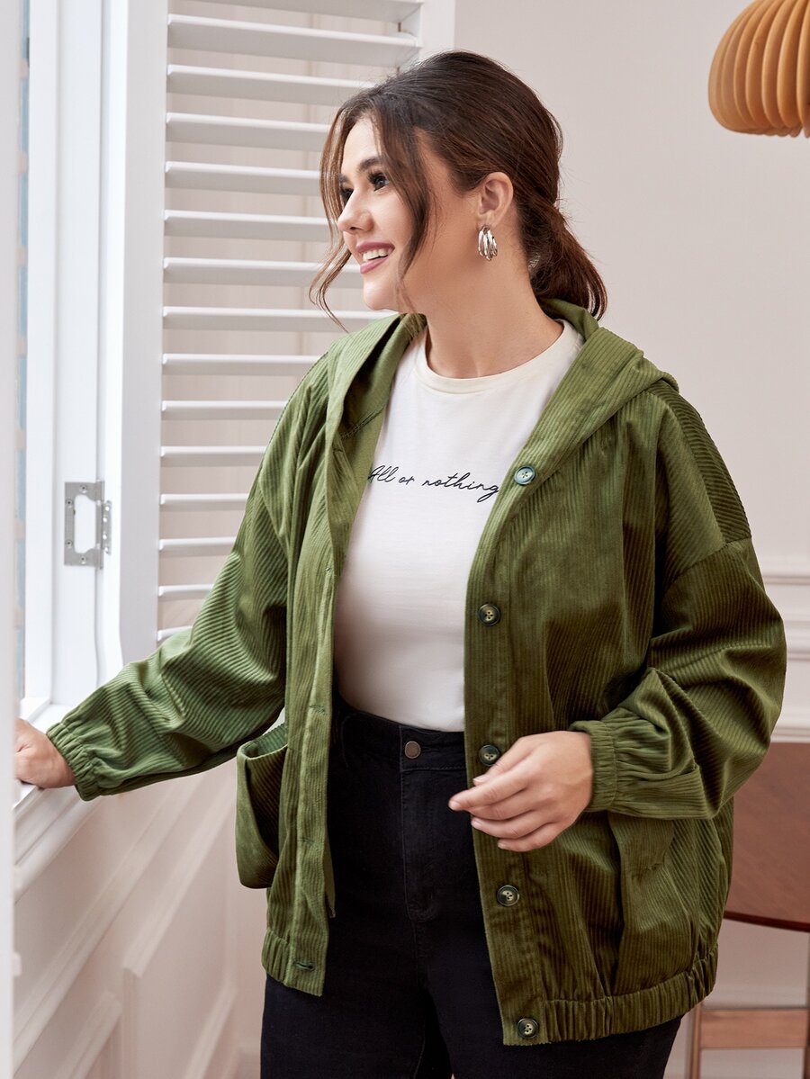 Jacke mit Drop Shoulder, Tasche Flicken, Kapuze, Kord