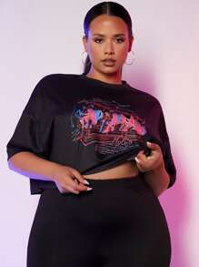 Drop Shoulder Crop T-Shirt mit Figur & Geometrie Muster