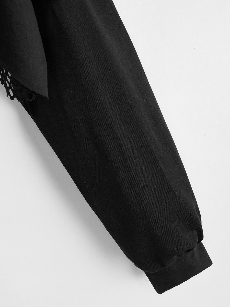 Super Crop Hoodie mit Fischnetz Einsatz und Kordelzug