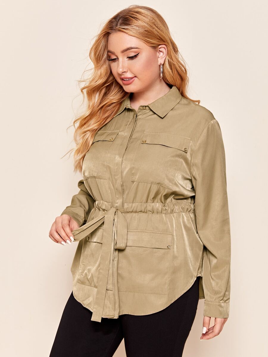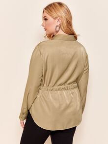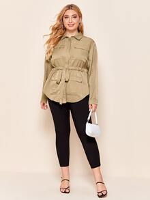 Mantel mit Taschen Klappe vorn, Kordelzug auf Taille und gebogenem Saum