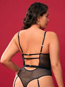 Teddy Body mit Blume Stickerei, Mesh Band vorne, Strumpfband