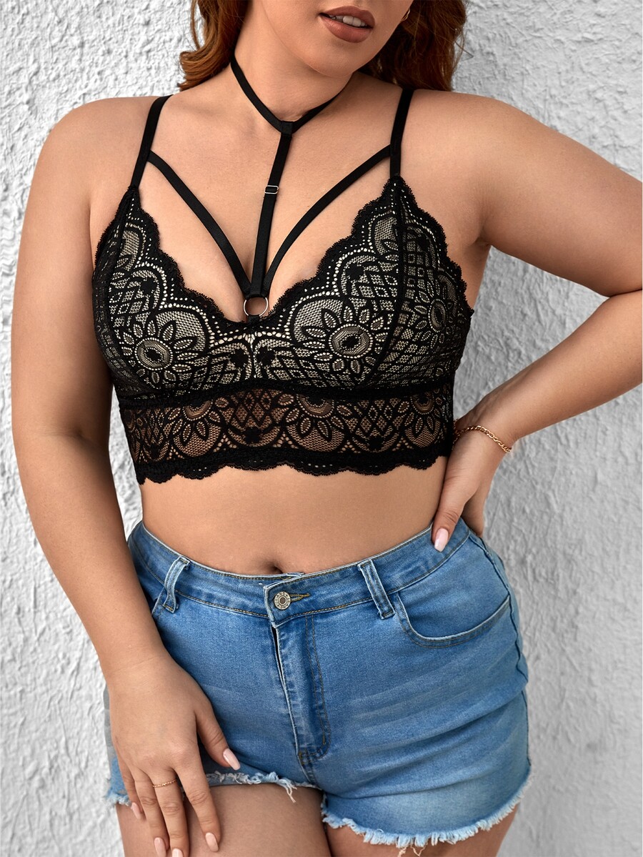 Harness Bra mit Blumenspitze, Bogenkante