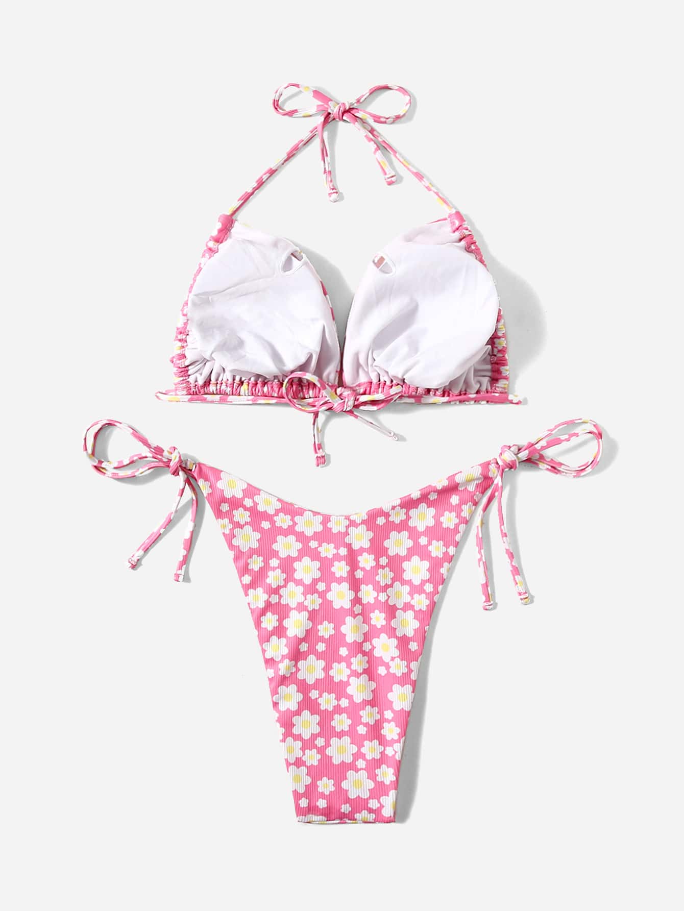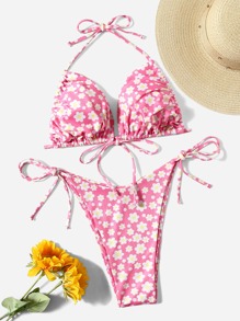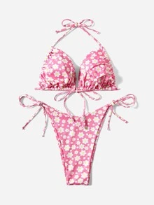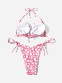 Große Größen Blume Muster Ripp Neckholder Bikini Set Sommer Strand